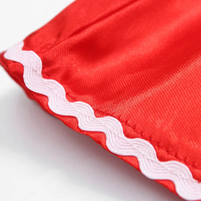Kostým ve stylu Červená karkulka s bílými detaily.