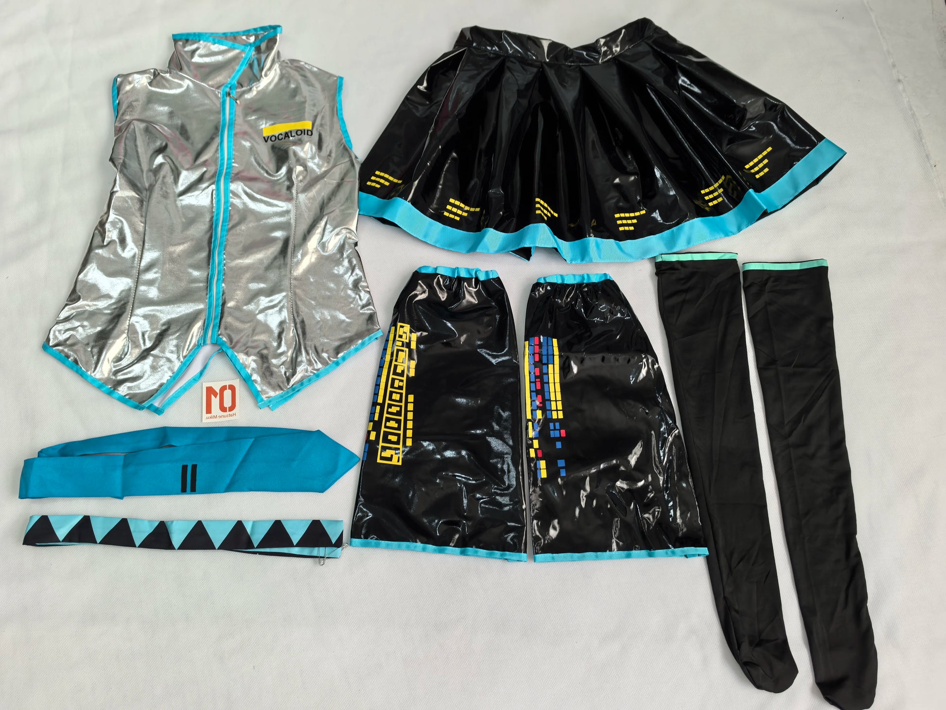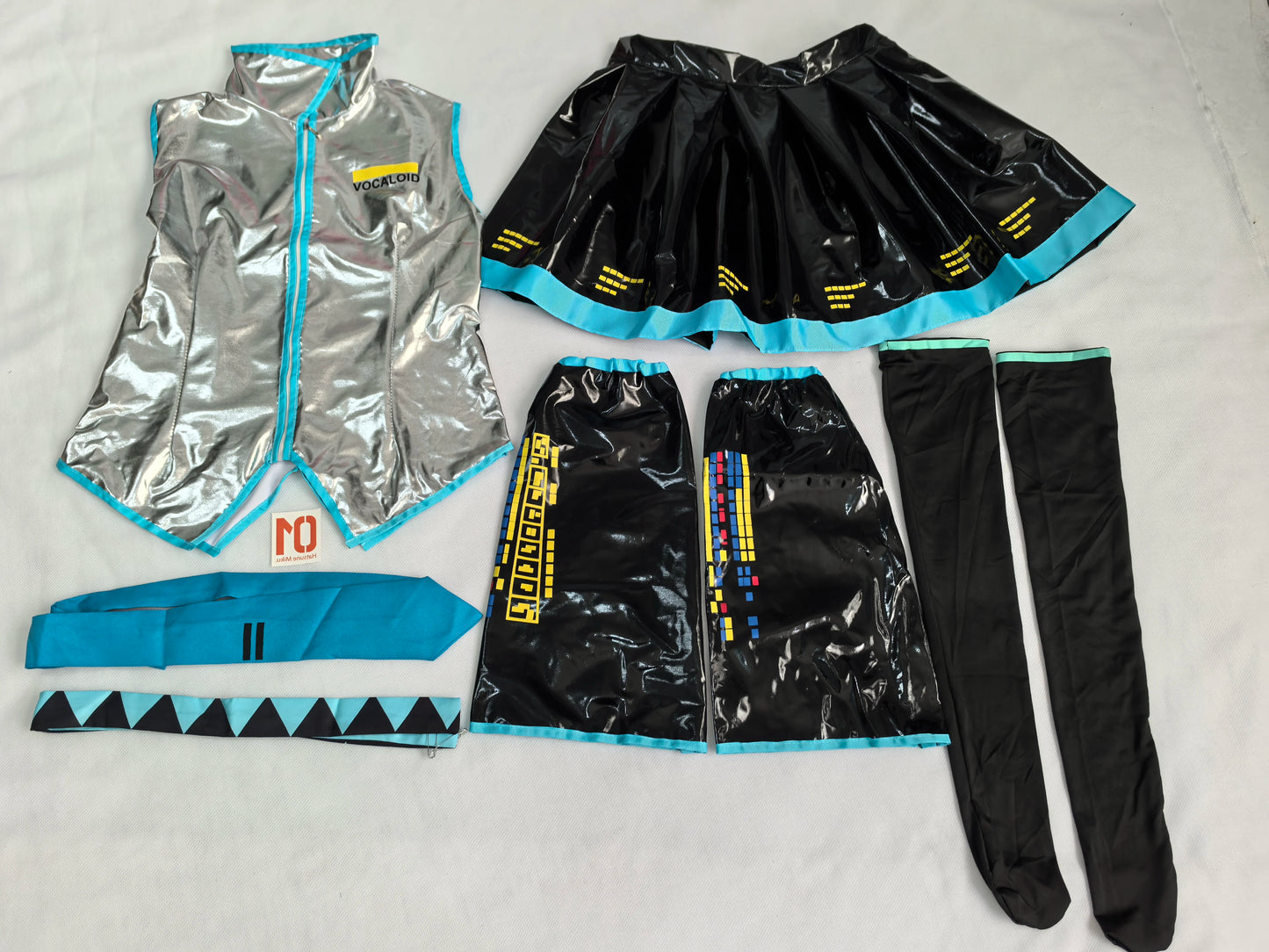Kostým ve stylu Miku v modro-stříbrné barvě.