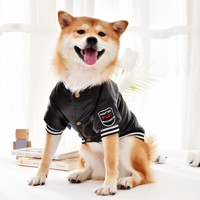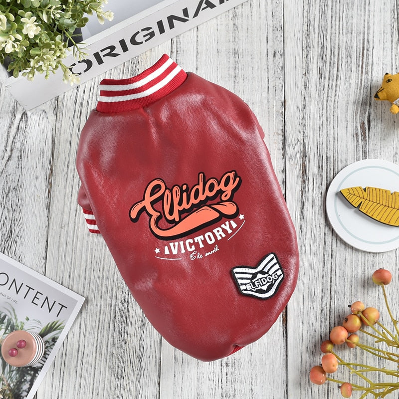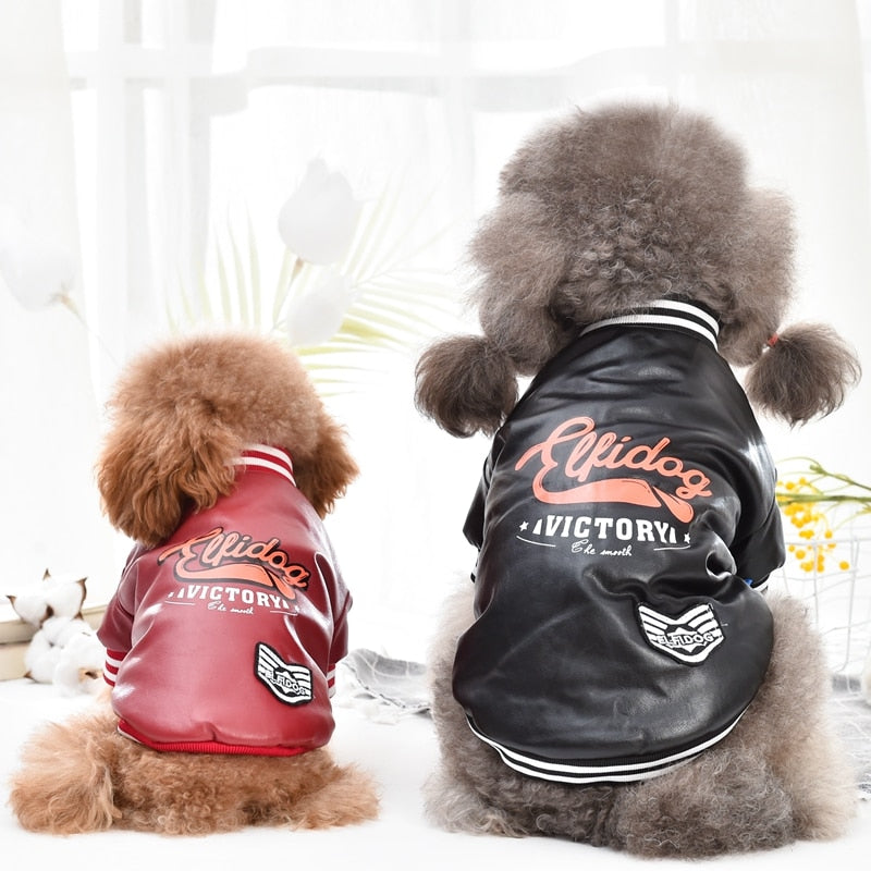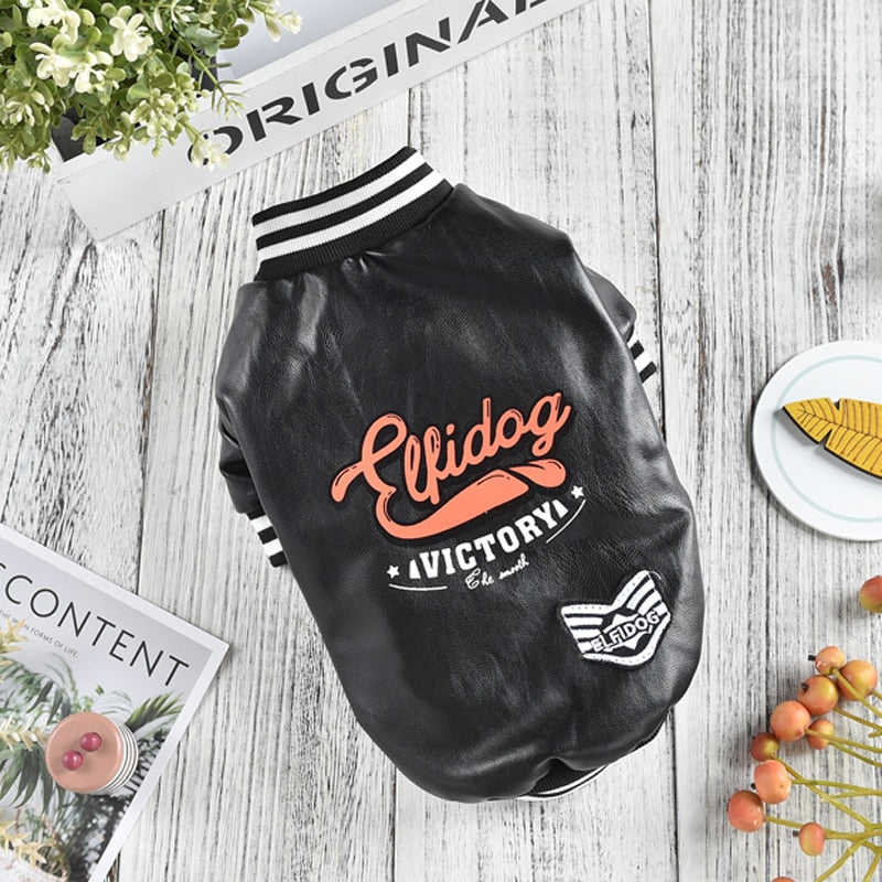 Koženková stylová bunda pro psy s nápisem. Více barev na výběr.