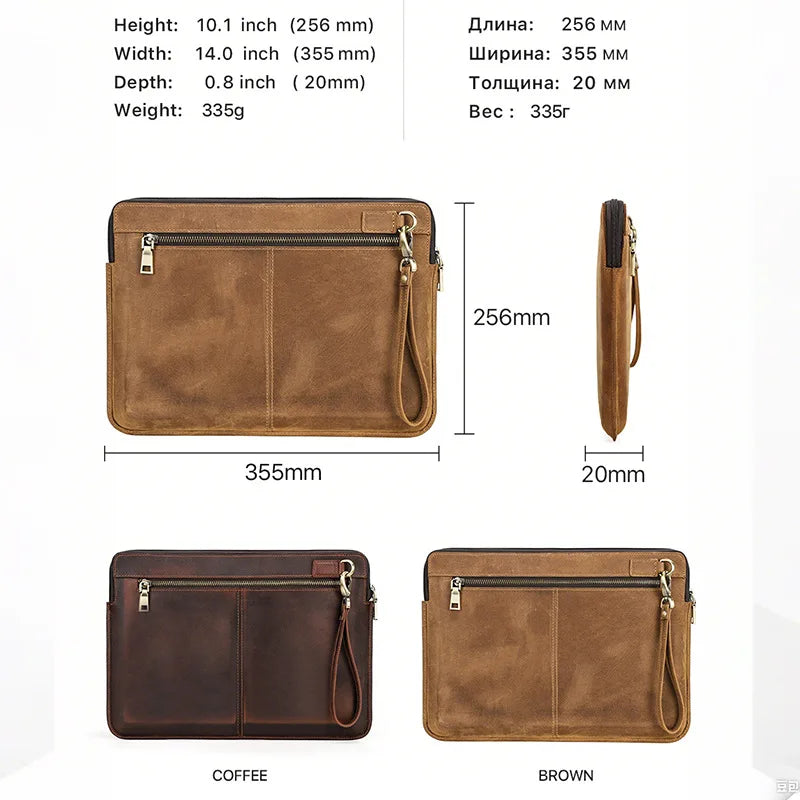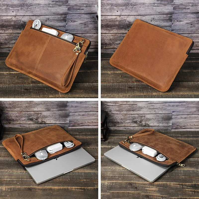 Kožený obal na notebook s kapsami a zipem. Dvě barvy na výběr.