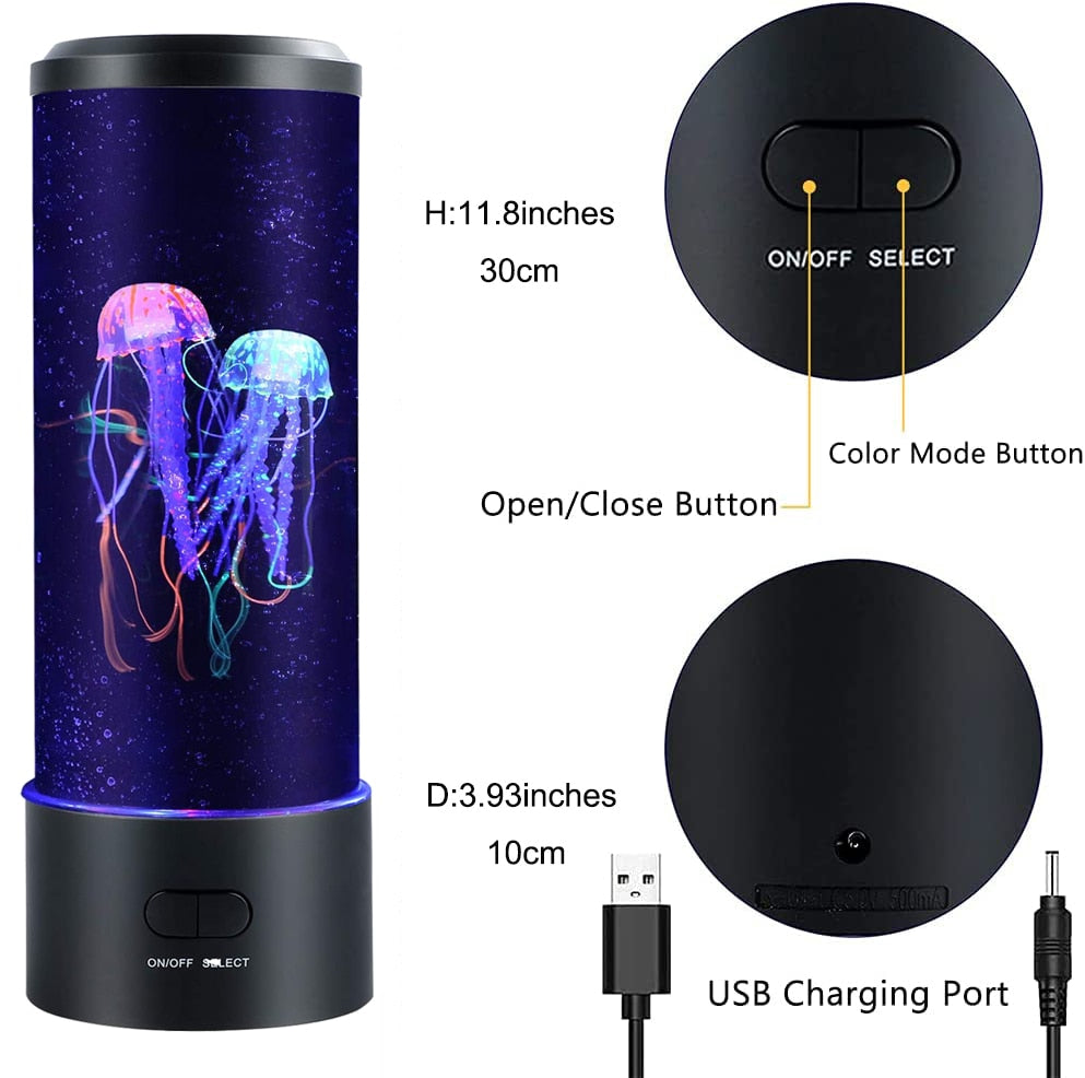 Stylová LED lampa s imitací medúz, které mění barvy. Nabíjení pomocí USB nebo 4xAAA baterie.