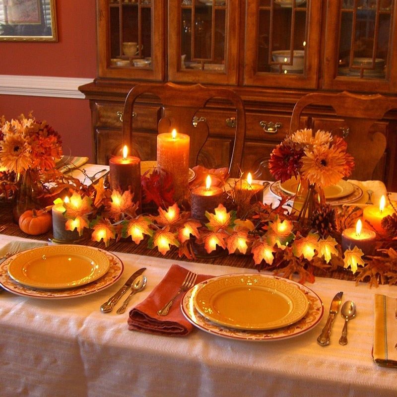LED dekorační světla na podzim ve tvaru listů. Dostupné v délce 3 m.