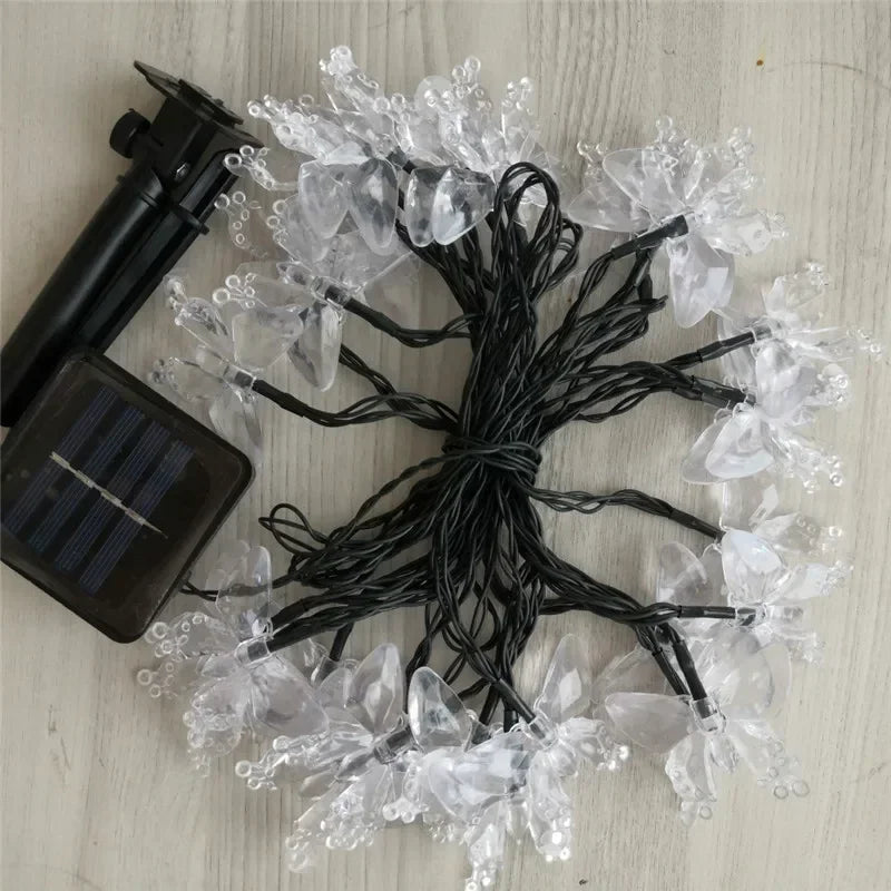 LED venkovní řetěz ve tvaru květin, motýlů a dalších. Nabijí s ena slunci 6-8 hodin a v noci svítí 8-12 hodin.