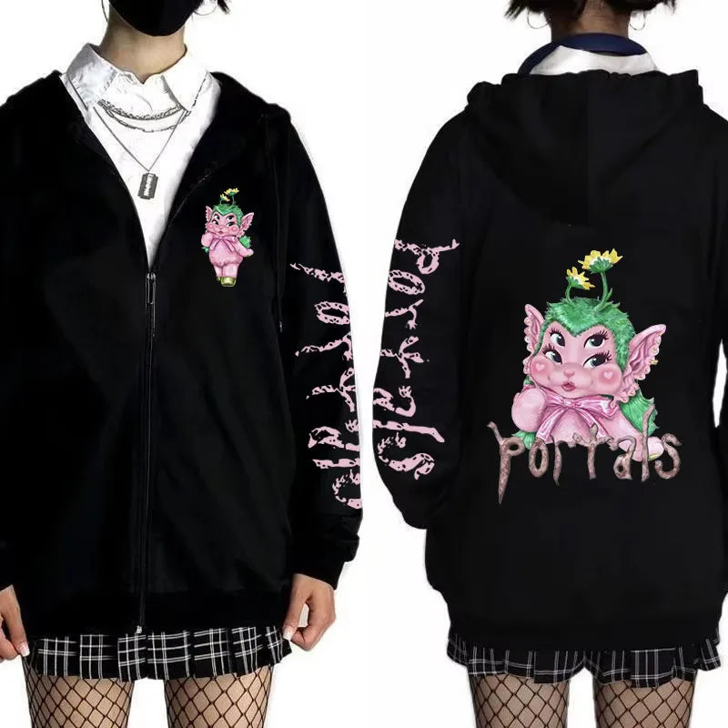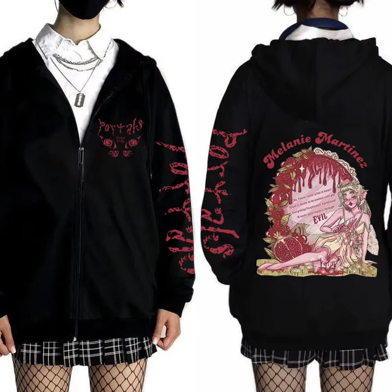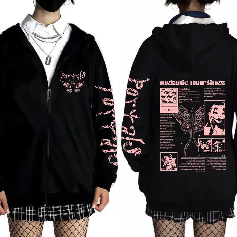Stylová oversized mikina s potiskem Melanie Martinez a kapucí.