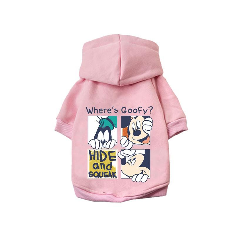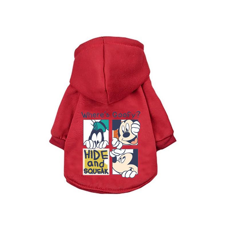Stylová mikina pro psy s potiskem Mickey Mouse a kapucí. Více barev na výběr.