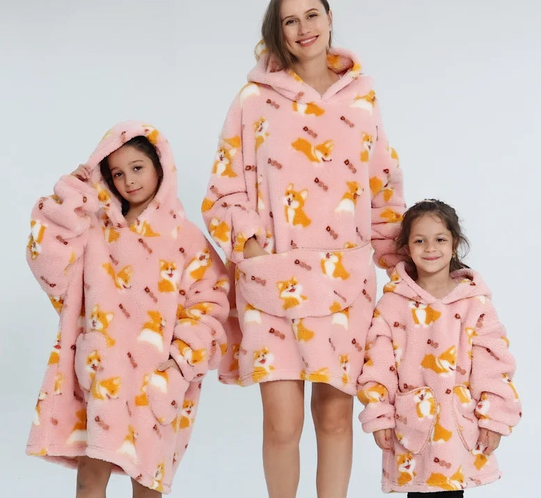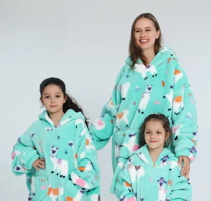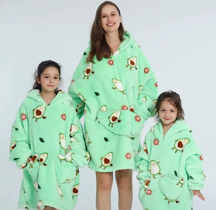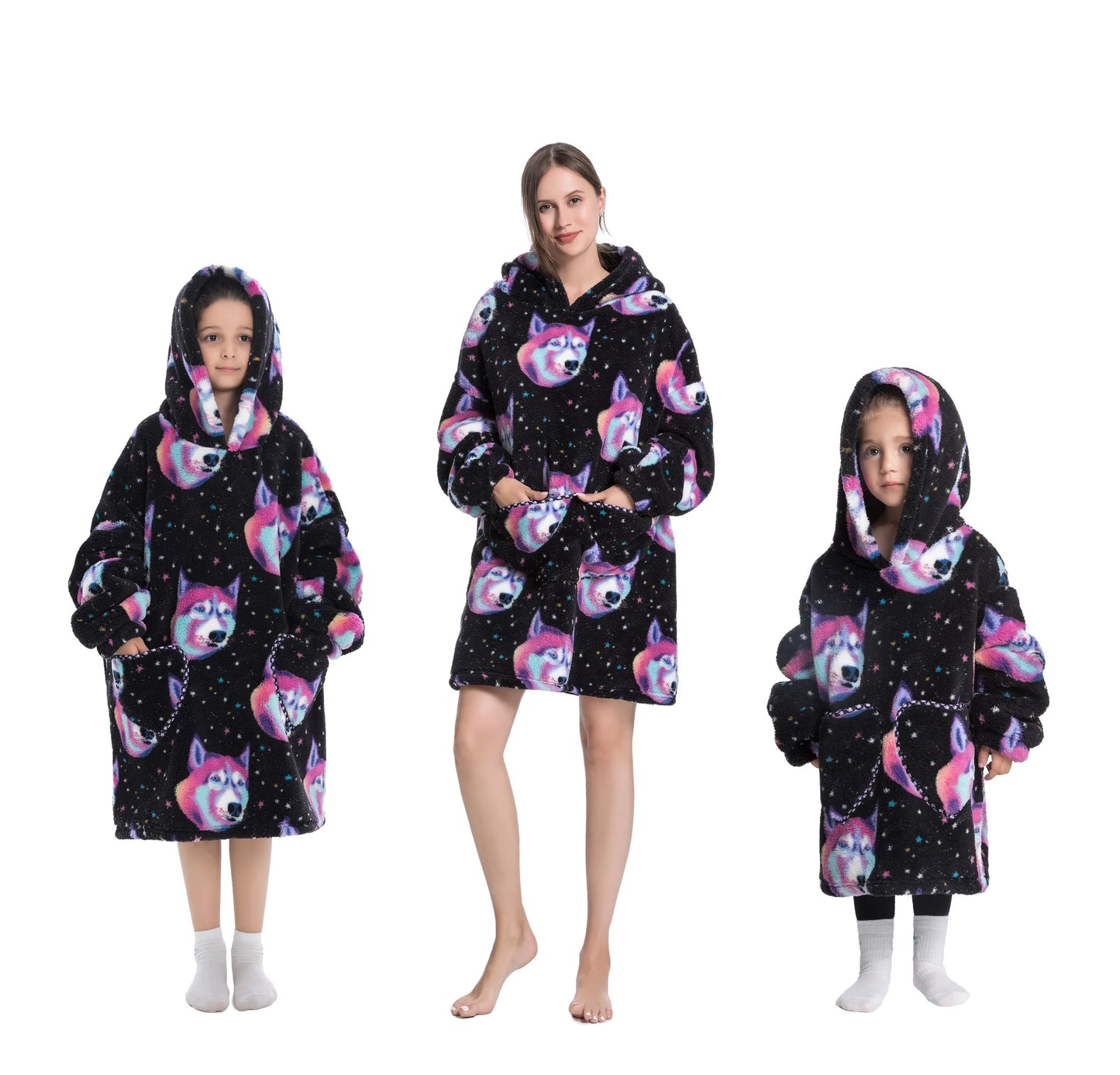 Mikinová pohodlná teplá deka s kapucí a kapsou. Více vzorů na výběr.