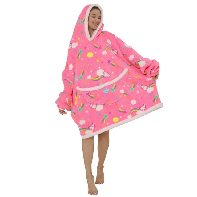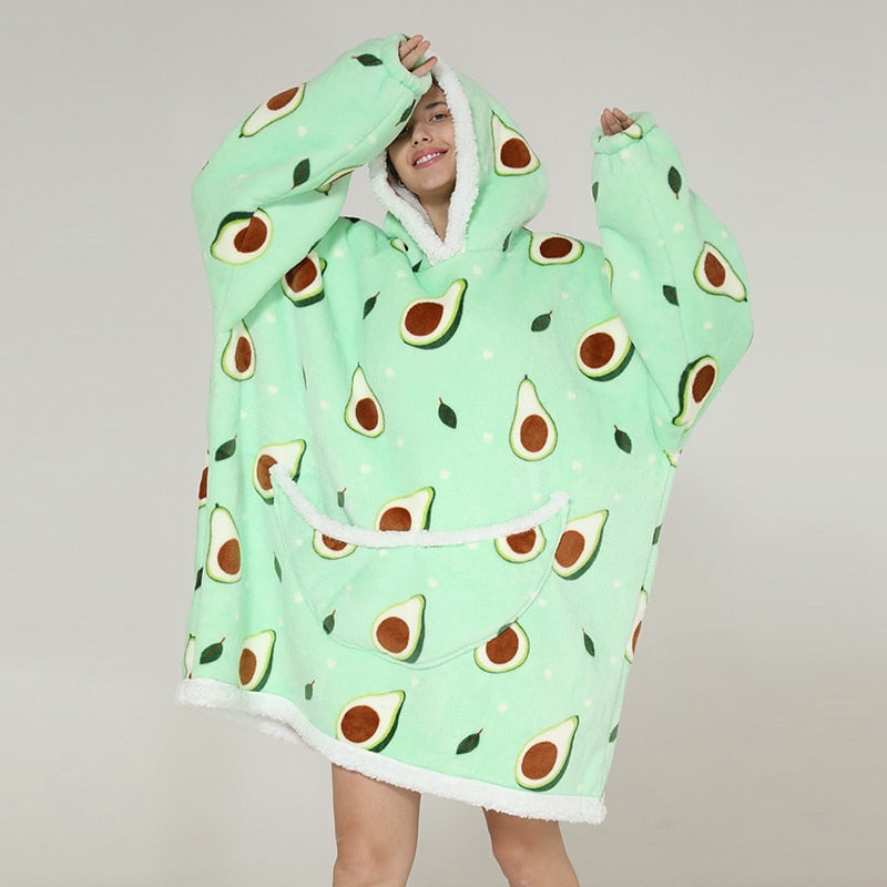 Stylová a pohodlná mikinová deka s potiskem a kapucí.