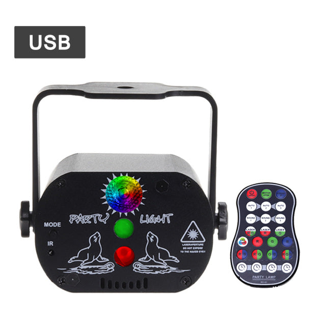 Mini party laserový projektor, který je perfektní pro domácí oslavy a nebo menší párty. Obsahuje 60 různých světelných efektů a je v balení s ovladačem.