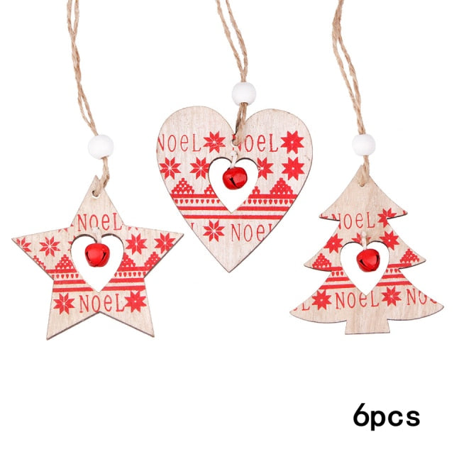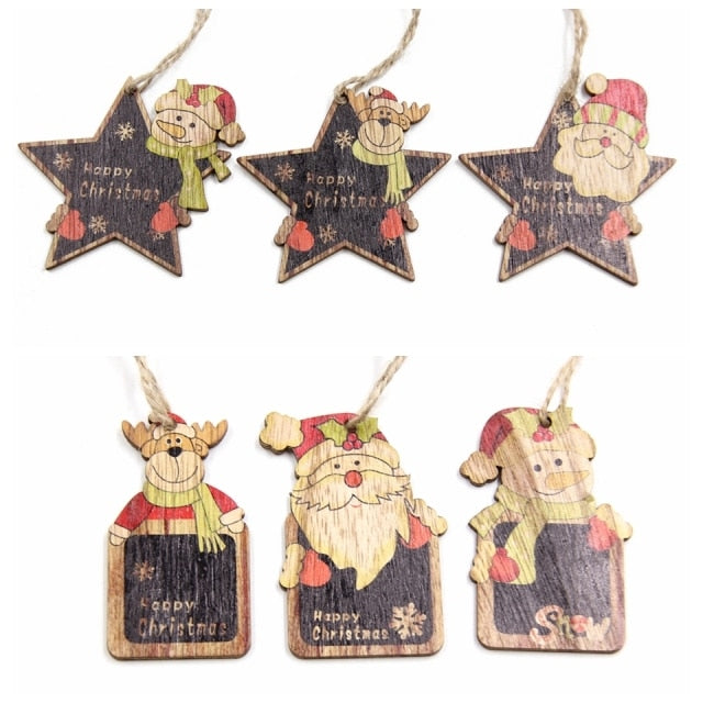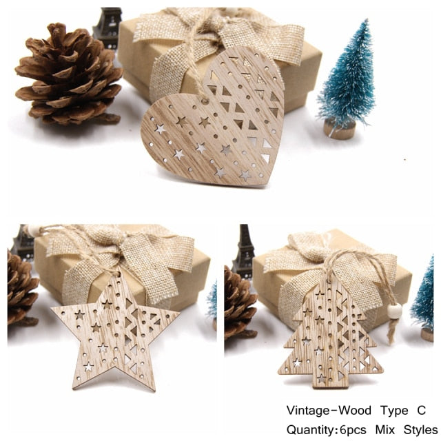 Minimalistické dřevěné ozdoby ve vánočních tvarech. Balení obsahuje 6 ks.