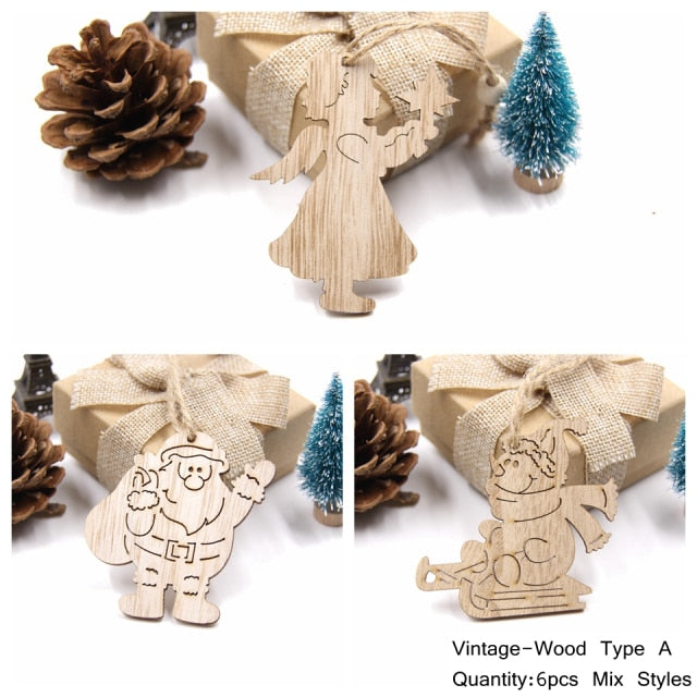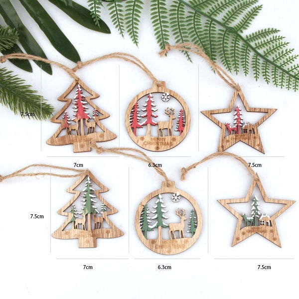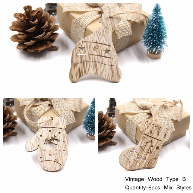 Minimalistické dřevěné ozdoby 6 ks