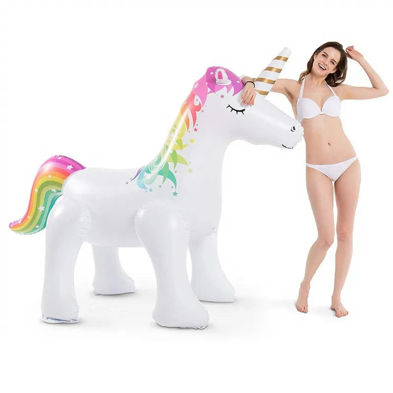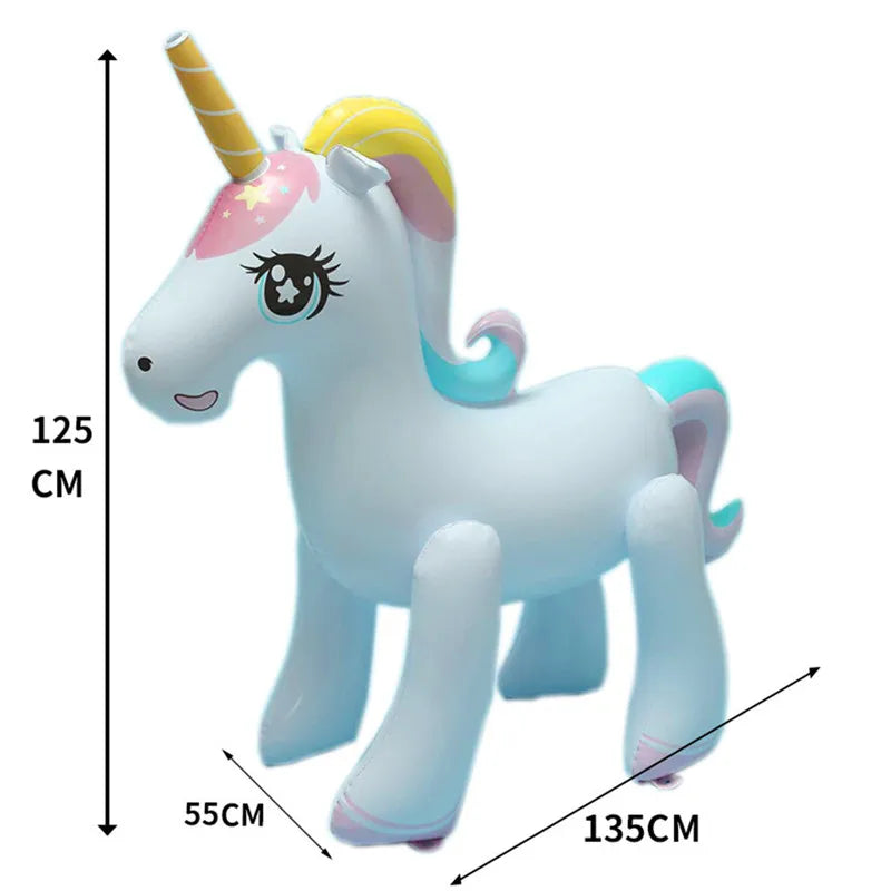 Nafukovací roztomilý stříkací jednorožec vytvoří zábavu pro děti. Lehké nafouknutí a možnost napojit zahradní hadici.