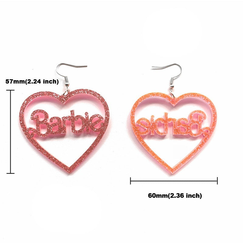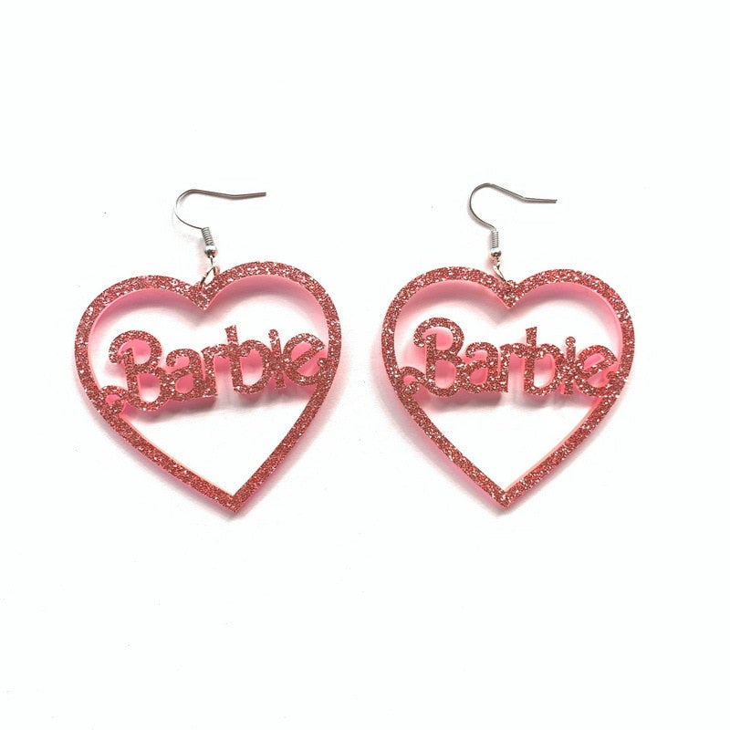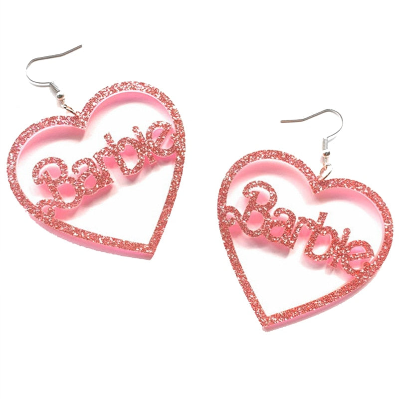 Vysící náušnice ve stylu Barbie v růžové barvě.