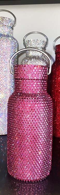 Nerezová láhev na vodu s kamínky ve více barvách a objemech.