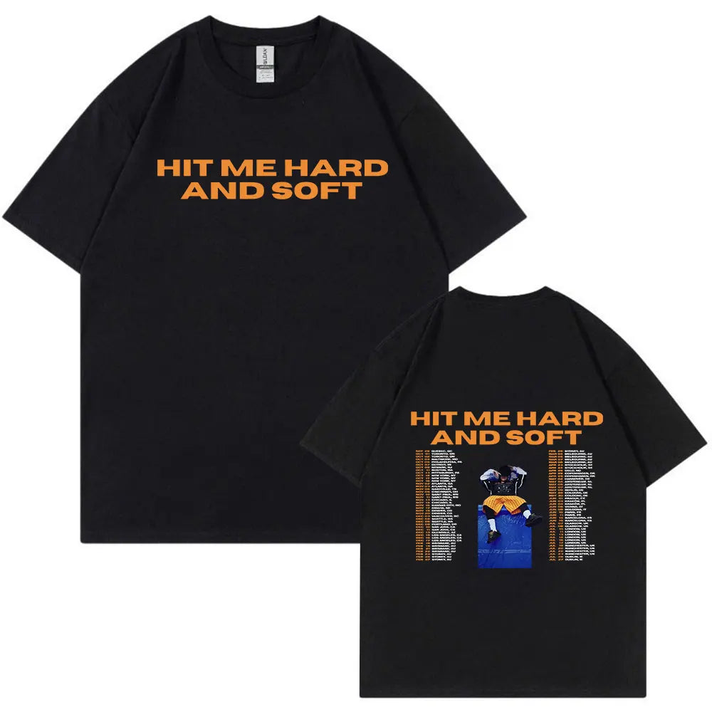 Unisex pohodlné triko s nápisem Hit Me Hard and Soft s krátkým rukávem.