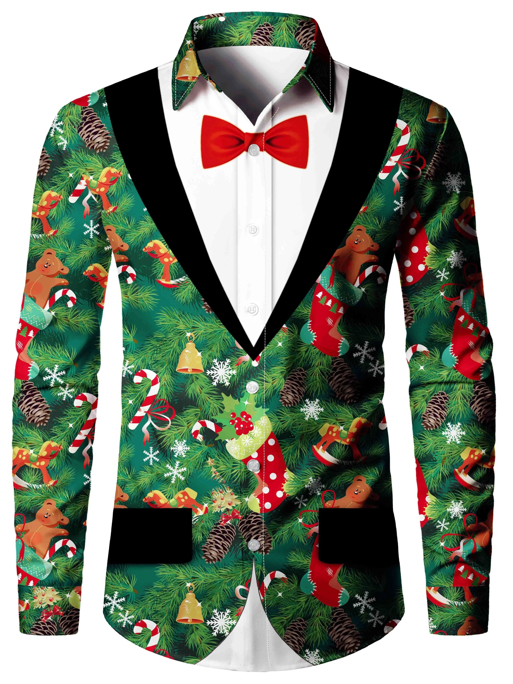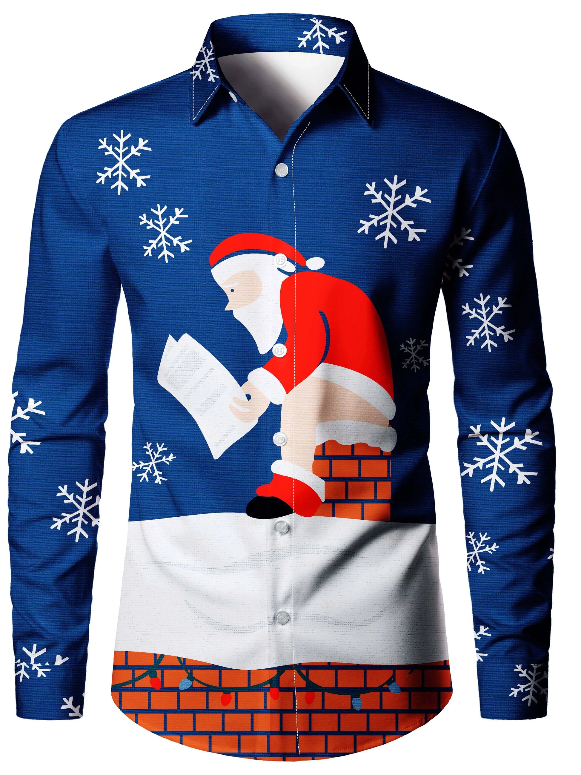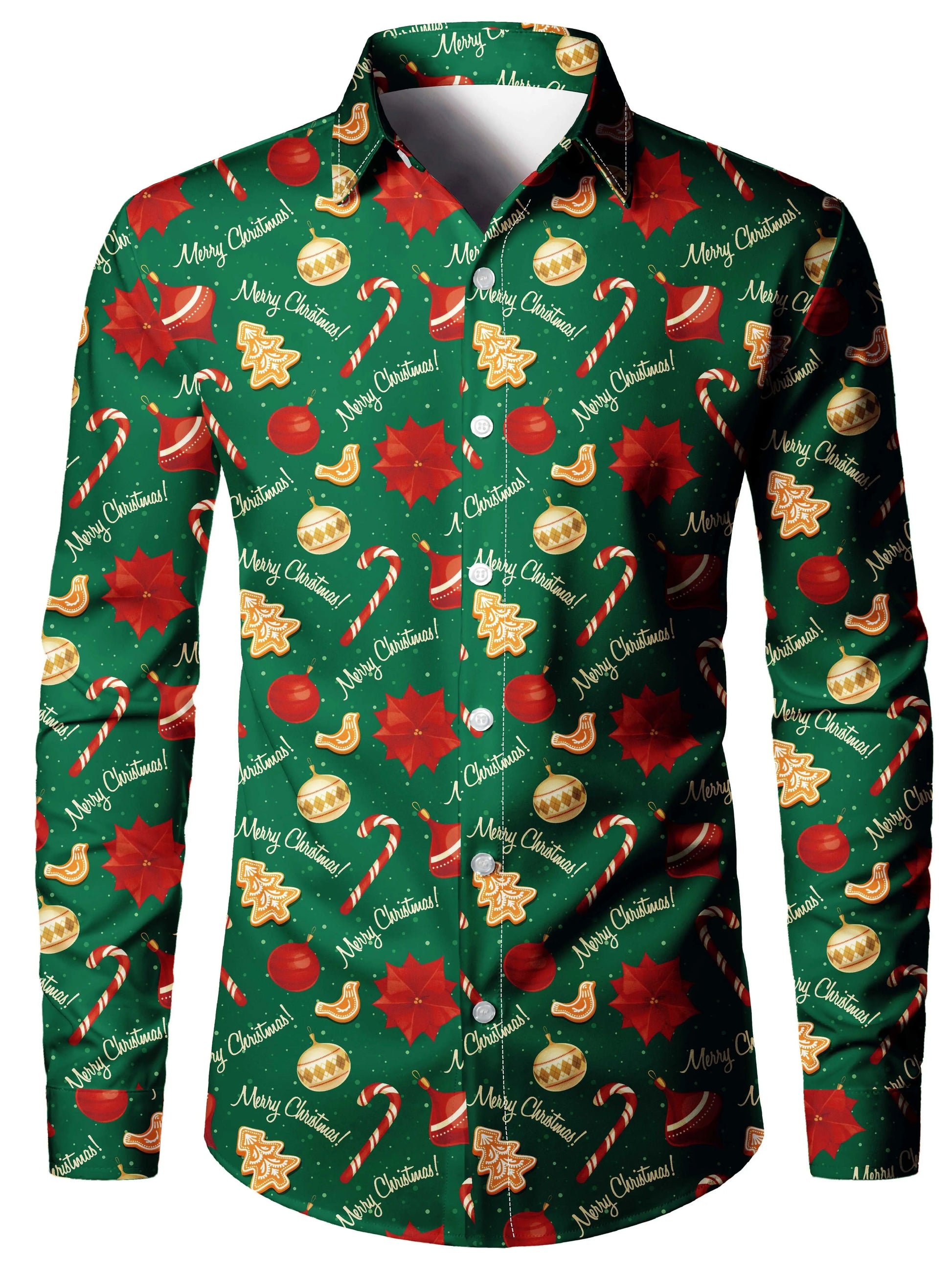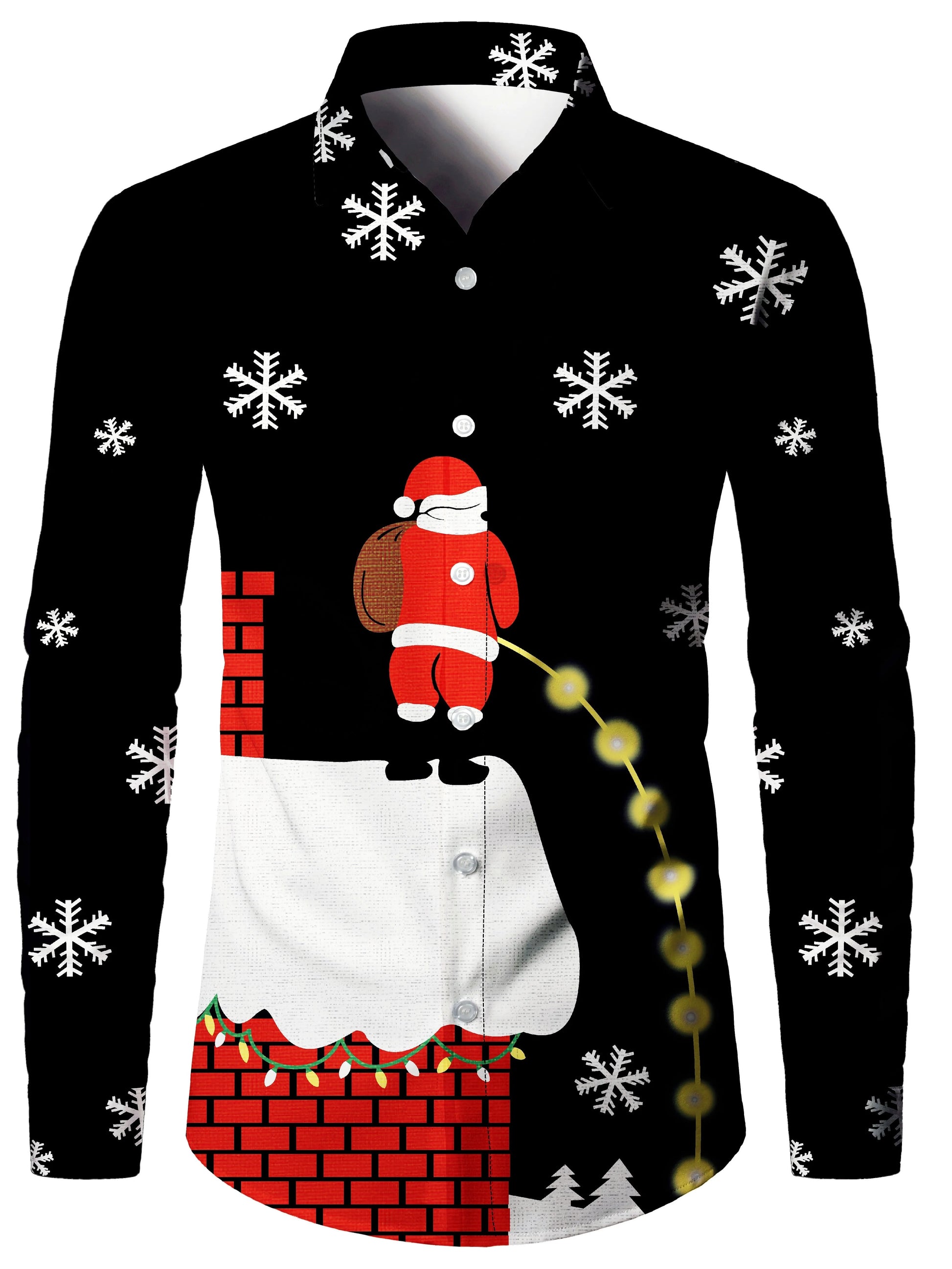 Pánská košile s vánočním vzorem s dlouhým rukávem ve více barvách na výběr.