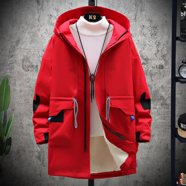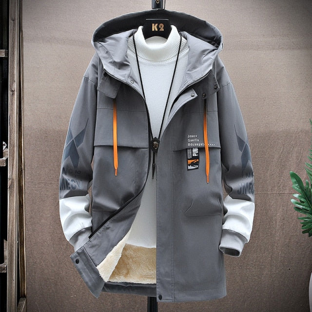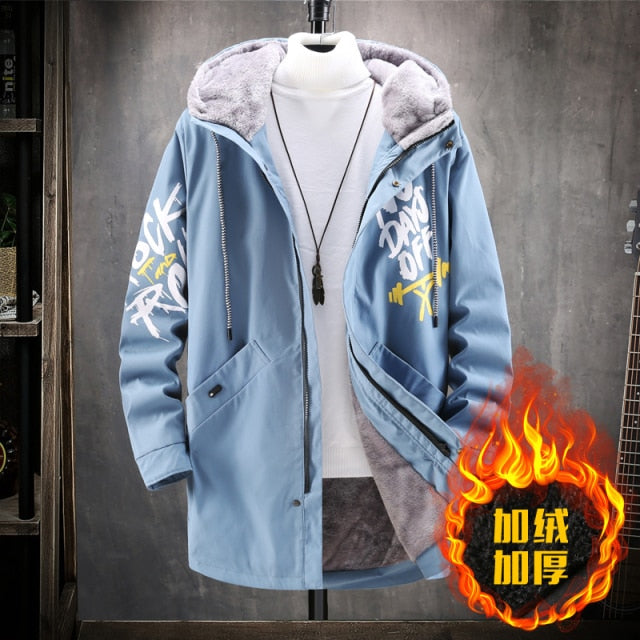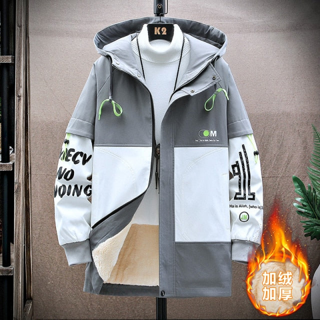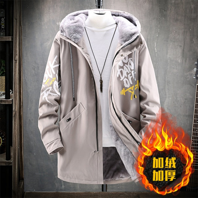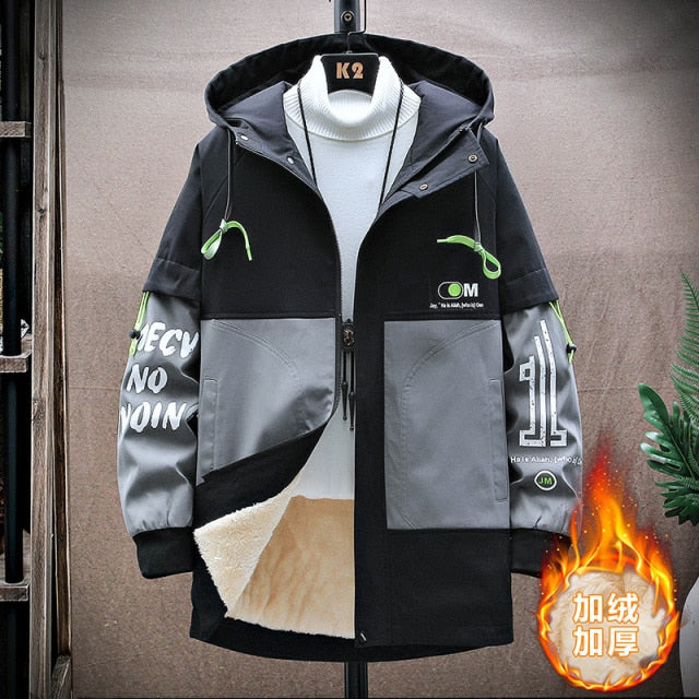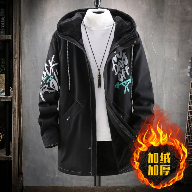 Pánská stylová dlouhá zimní hip hop bunda s nápisy a kapucí. Více barev na výběr.