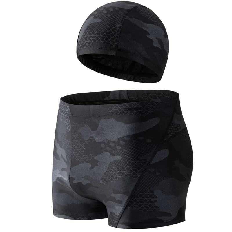 Pánské stylové maskáčové plavky s čepicí. Více druhů na výběr.
