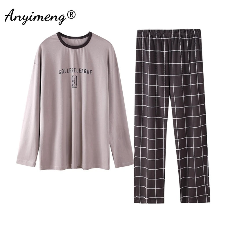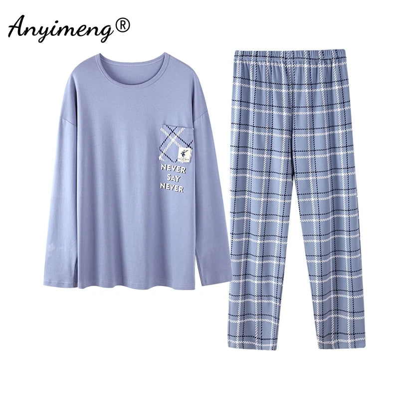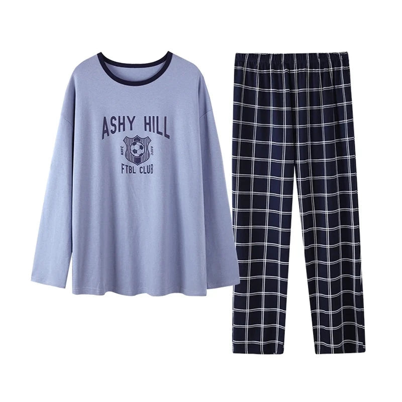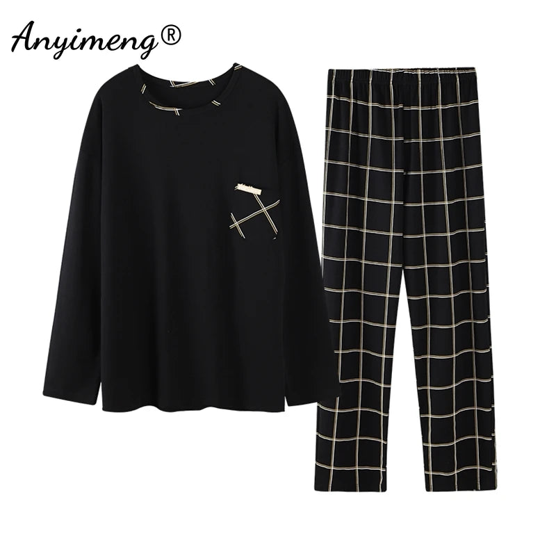Pánské pohodlné dlouhé pyžamo s kostkovaným vzorem na kalhotech. Více barev na výběr.