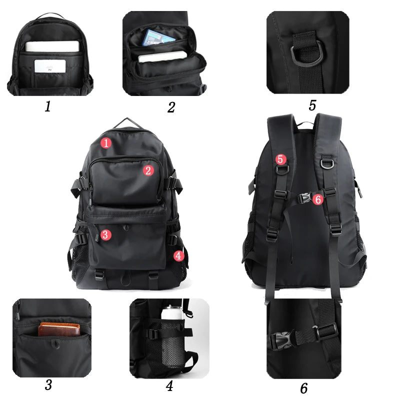 Pánský pohodlný stylový batoh s mnoha kapsami v černé barvě.