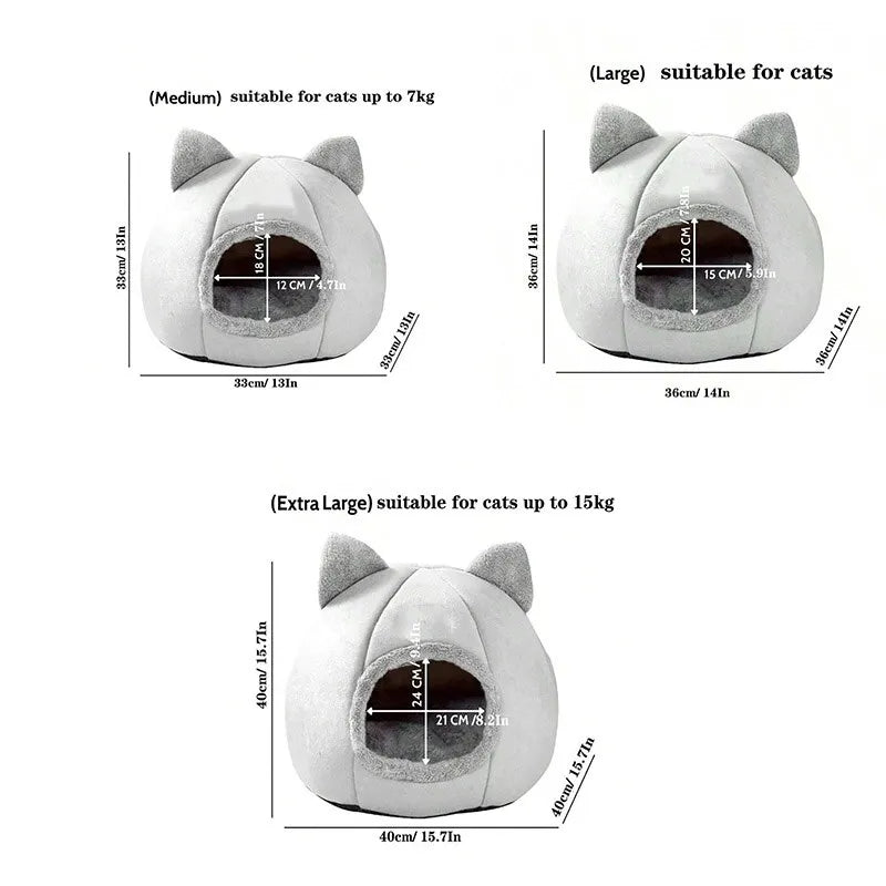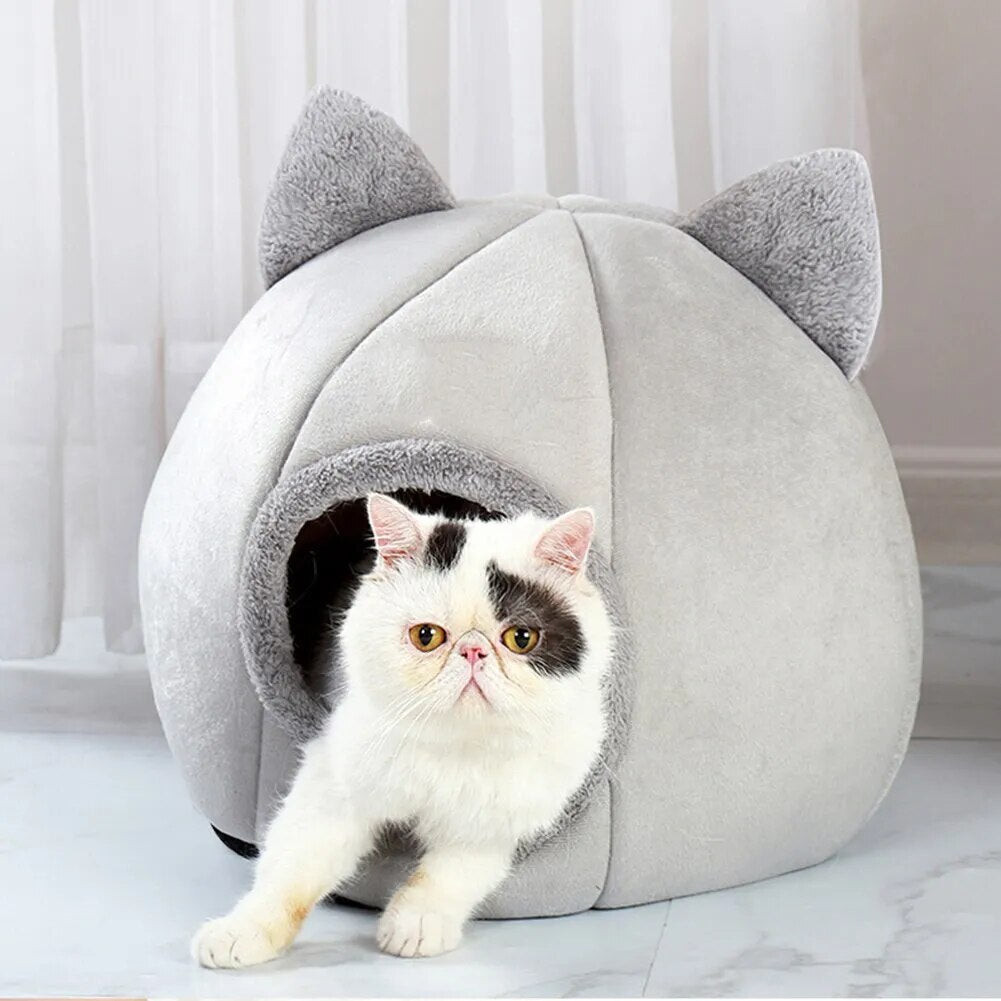 Teplý pelíšek pro kočky s oušky v šedé barvě ve více barvách na výběr.