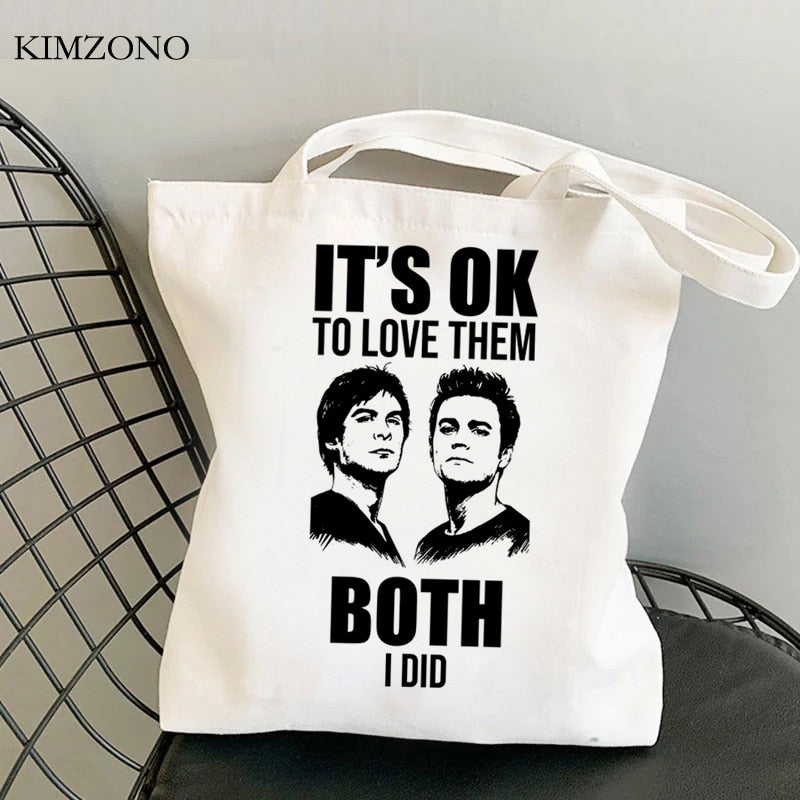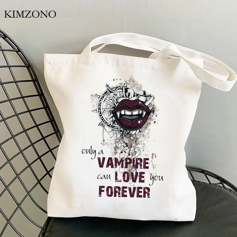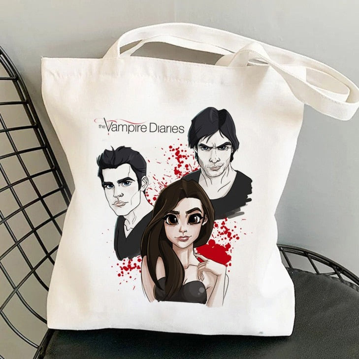 Plátěná jednoduchá taška s potiskem Upíří deníky. Více druhů na výběr.