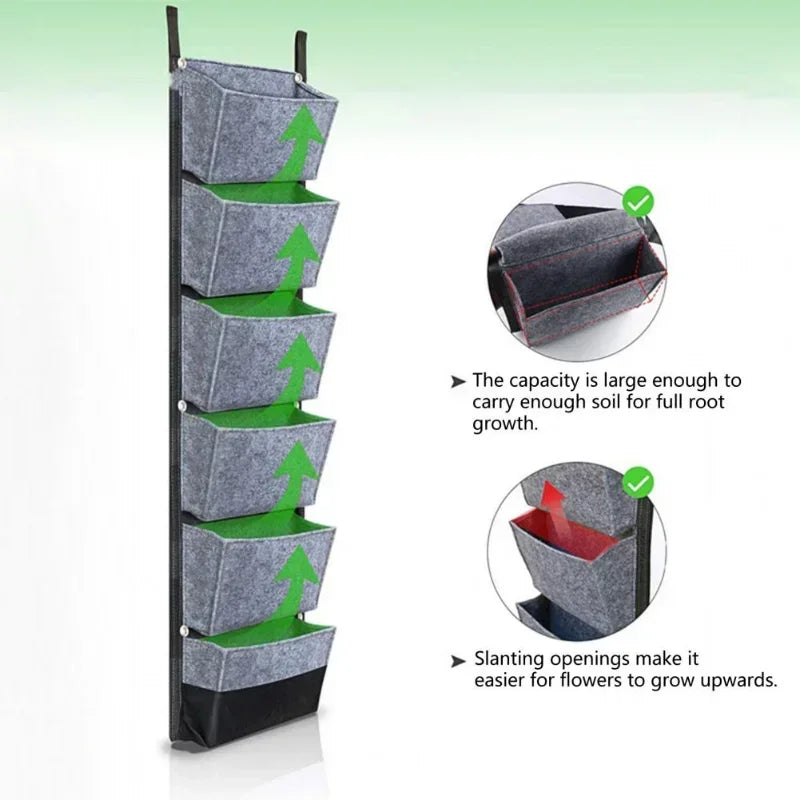 Plstěná vertikální taška na pěstování dokáže lépe zadržovat vlhkost a pomalu ji uvolňovat, aby bylo dosaženo perfektních půdních podmínek. Poskytuje tento květináč zdravé prostředí pro pěstování vašich květin, bylinek, závěsných orchidejí atd. a šetří vám místo. Šířka je 30 cm, výška 107 cm.