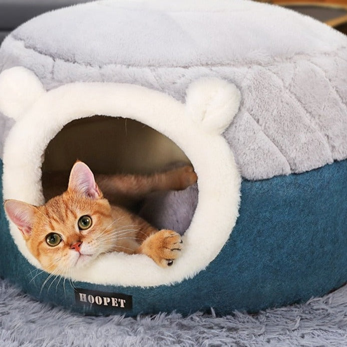 Plyšový pohodlný pelíšek pro kočky v šedo-modré barvě. Více rozměrů na výběr.