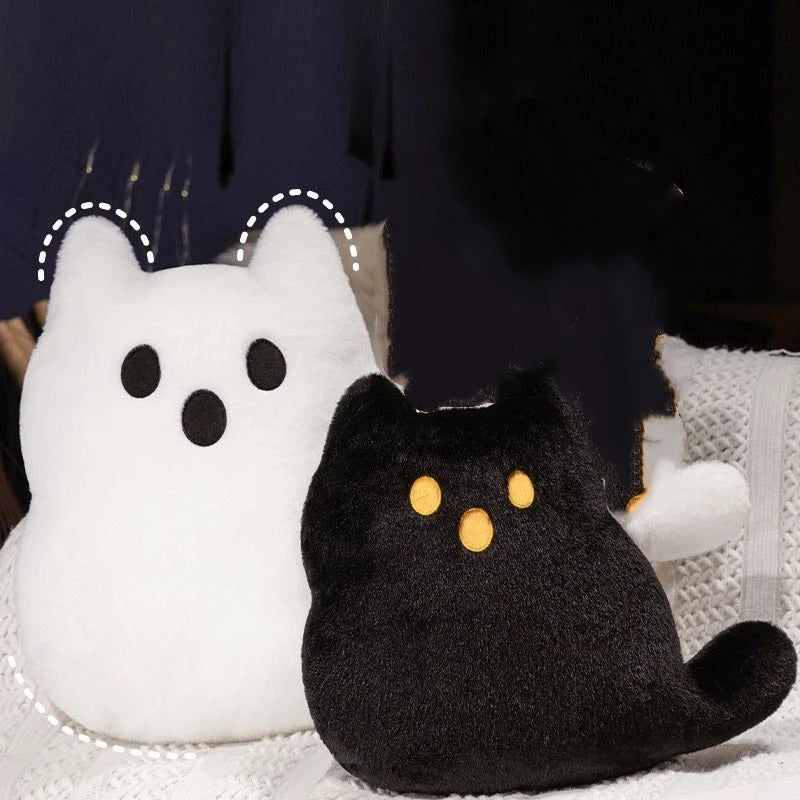 Polštář ve stylu ducha v černé nebo bílé barvě.