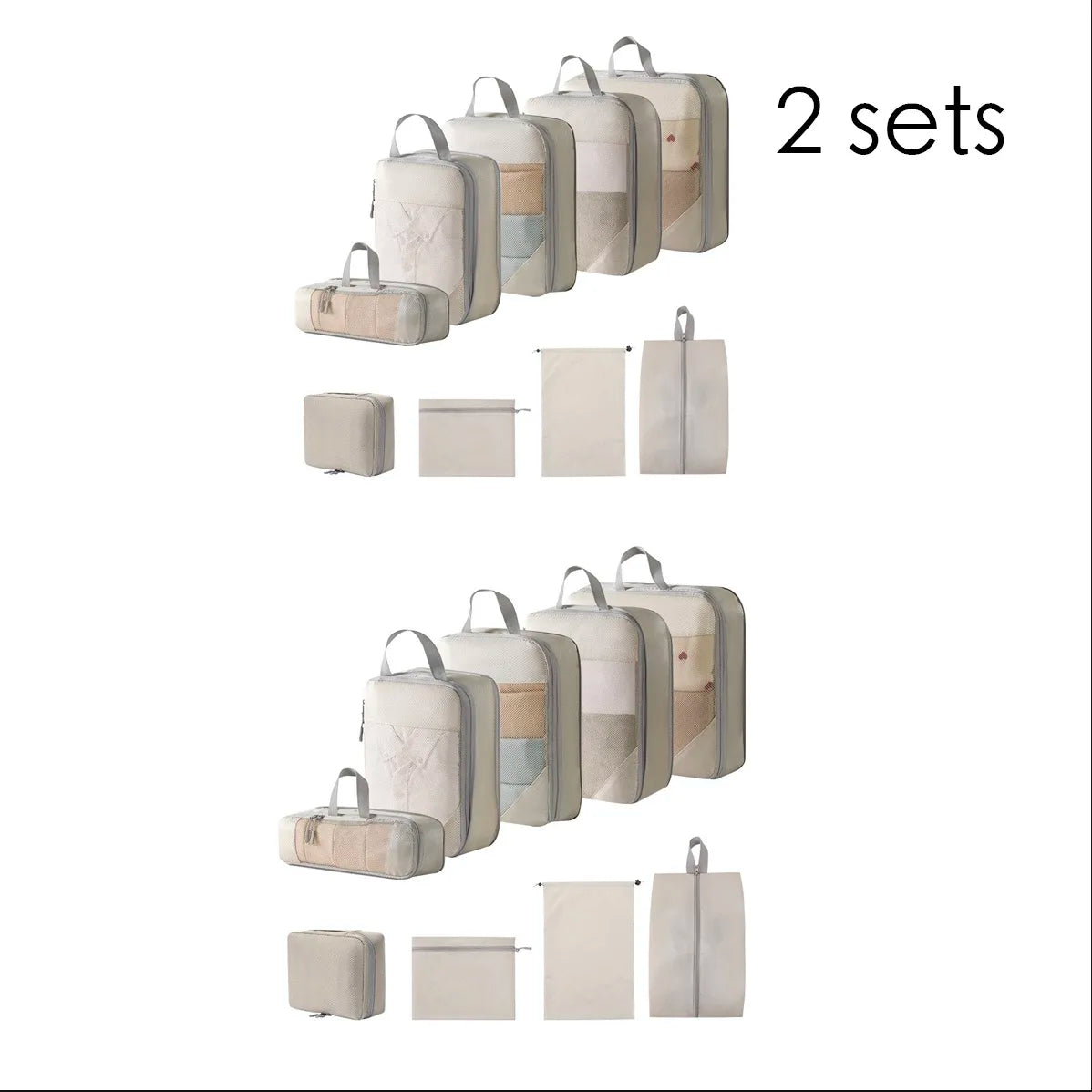 Průhledné organizéry do kufru v tělové barvě. Set obsahuje 5 ks.