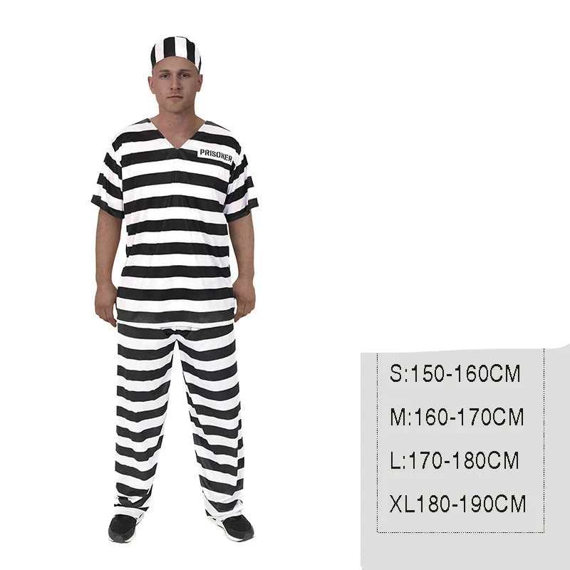 Rodinný vtipný kostým ve stylech vězne v oranžové nebo pruhované barvě.