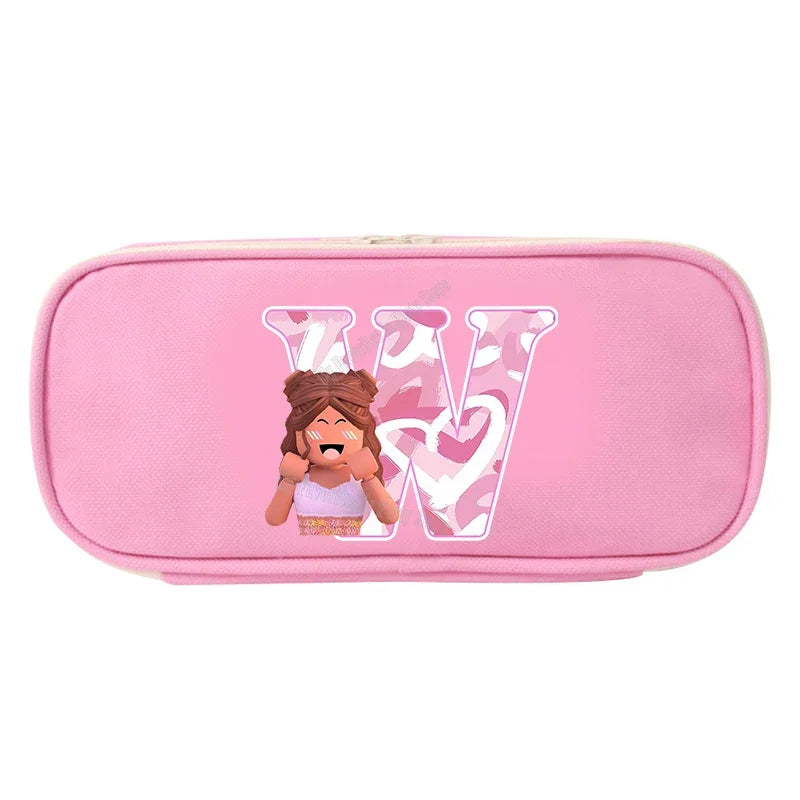 Růžový prostorný penál s potiskem Roblox ve více stylech.