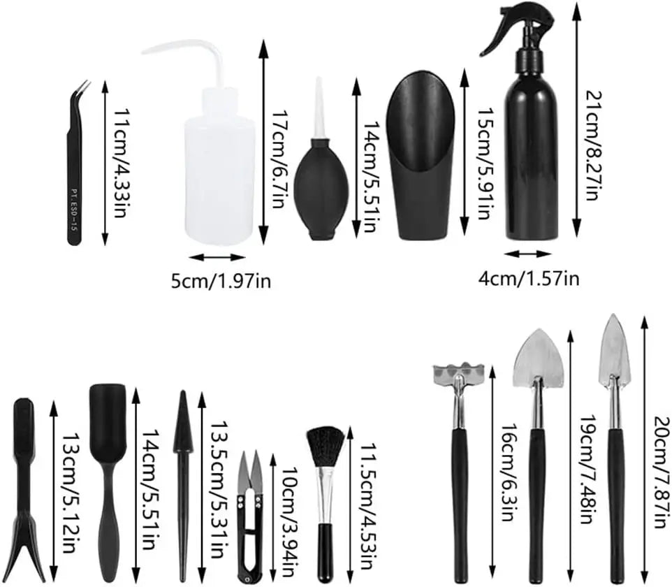 Sada zahradních pomůcek pro sukulenty k rytí, plení, kypření půdy, přesazování, zalévání, čištění, prořezávání, hydroponické pěstování atd..