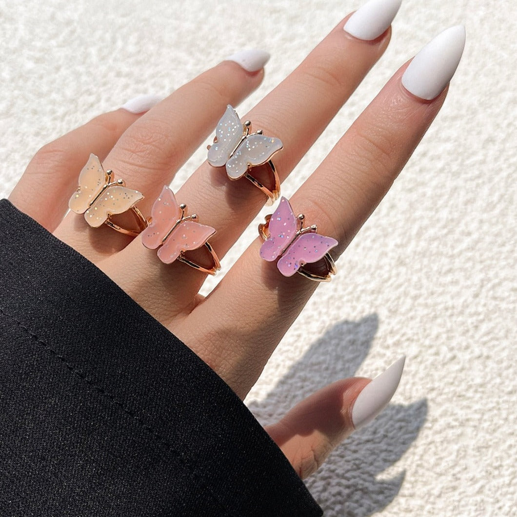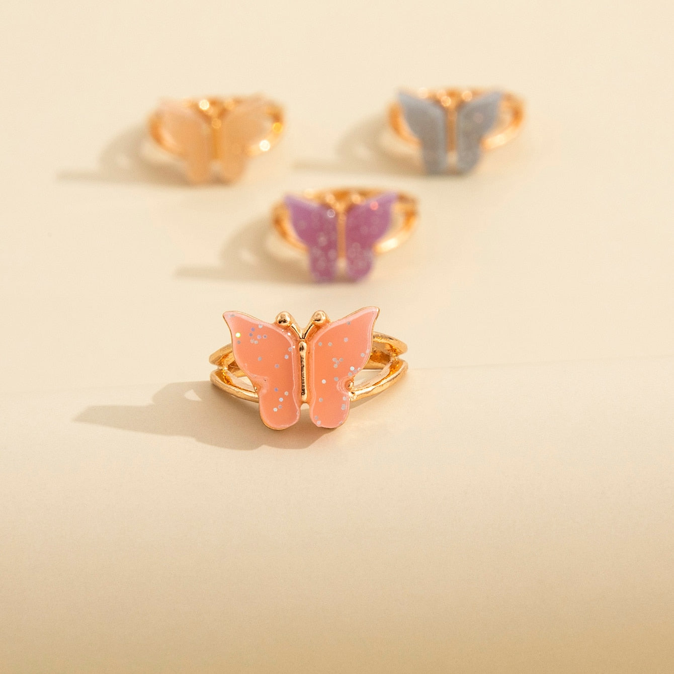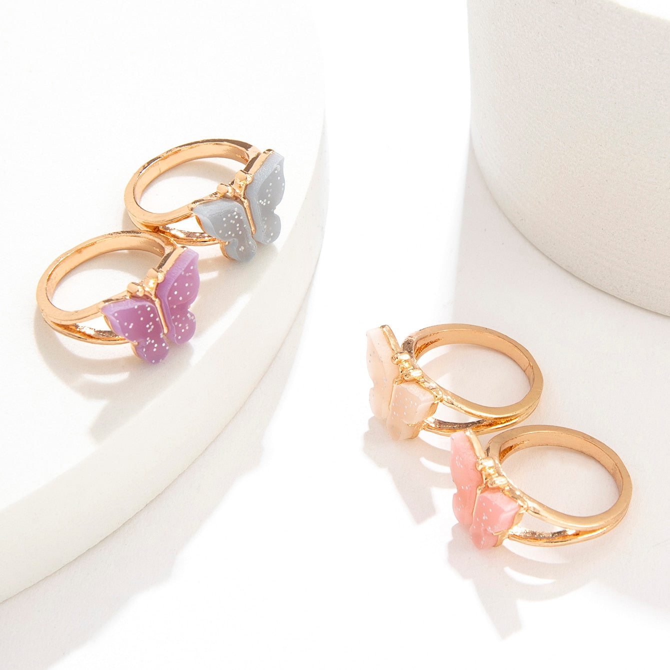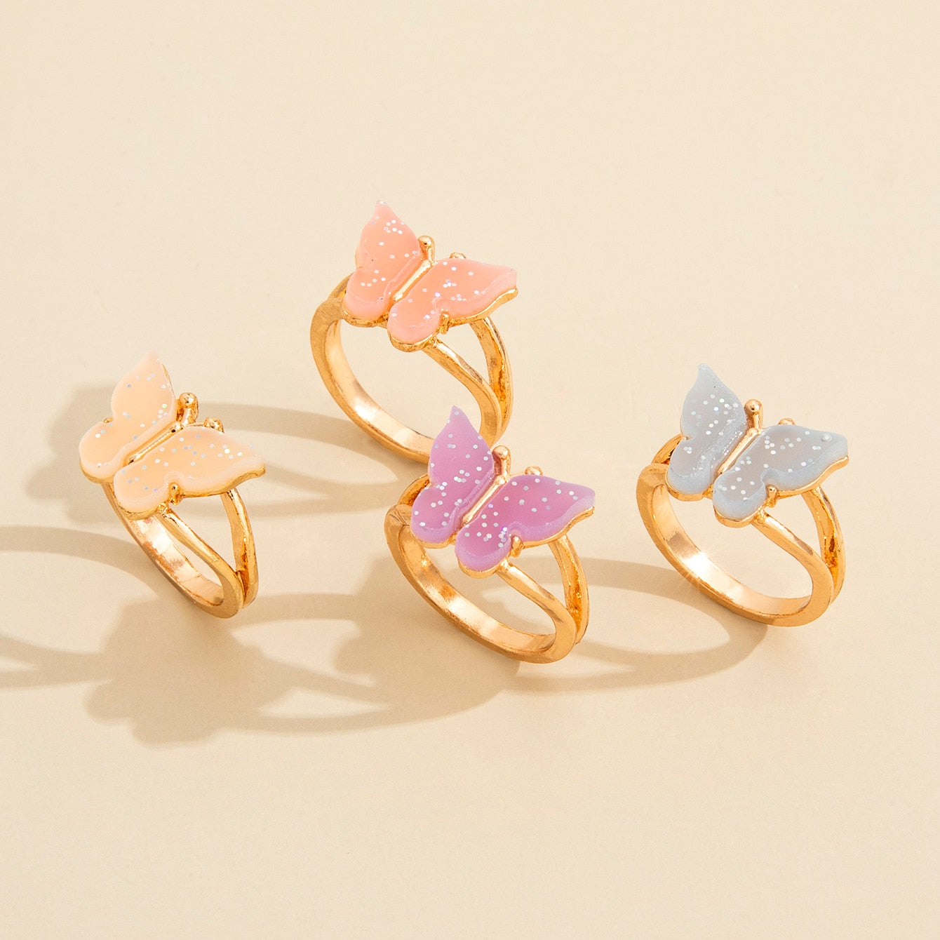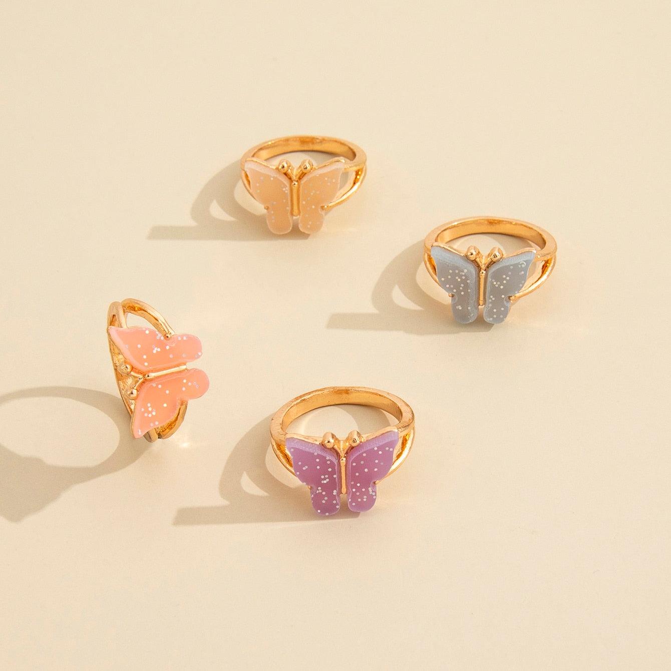 Set dámských prstenů Y2k s barevnými motýli. Balení obsahuje 4 ks.