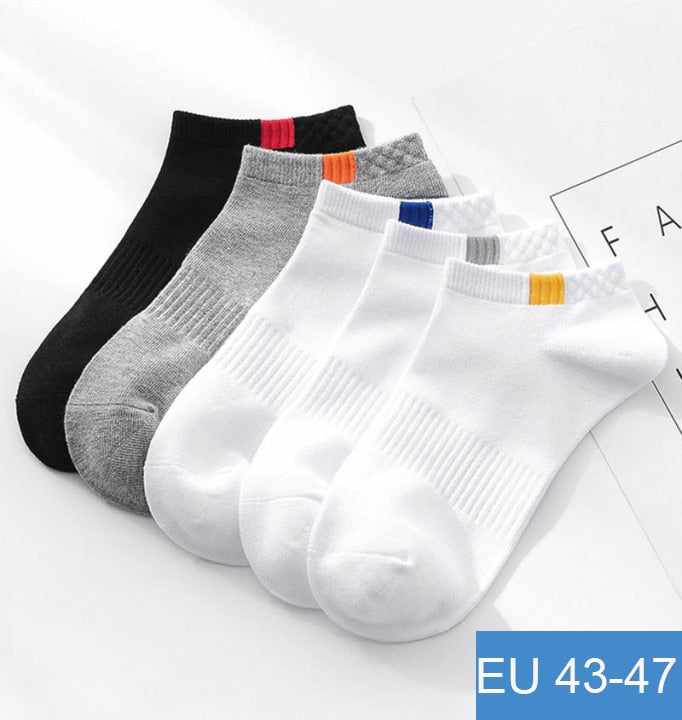 Set pohodlných pánských kotníkových ponožek s pruhem. Více barev na výběr. Balení obsahuje 5 párů.