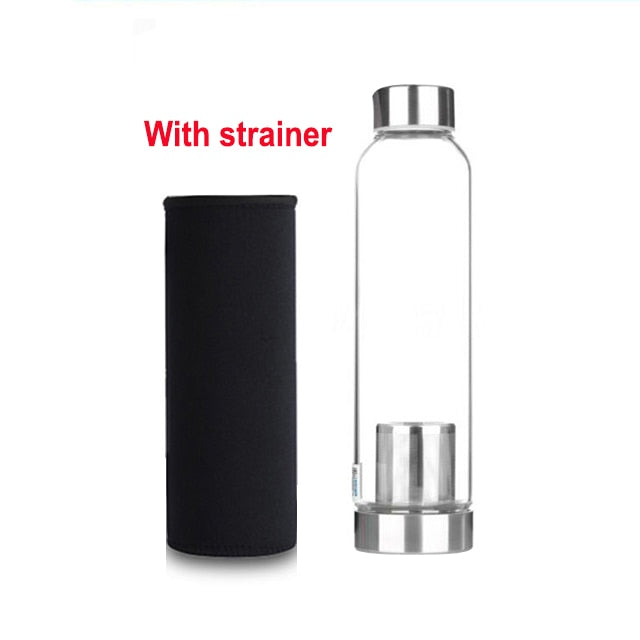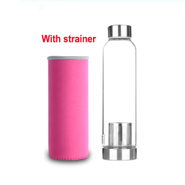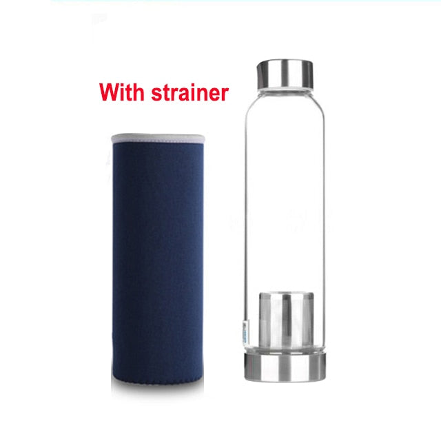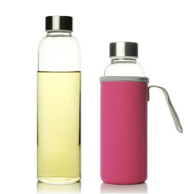 Stylová skleněná láhev, která je v balení spolu s ochranným látkovým rukávem v různých barevných kombinacích a velikostech. Objem láhve je 280, 360 či 550ml.