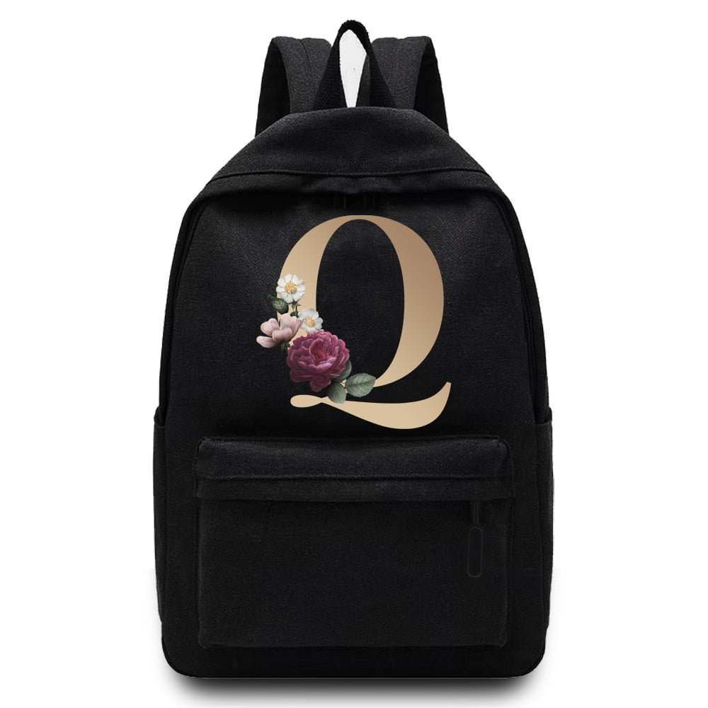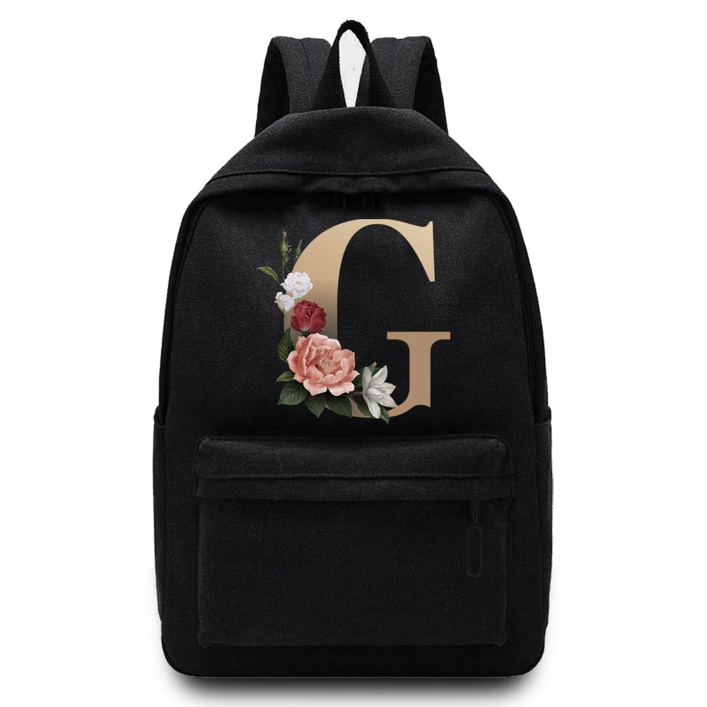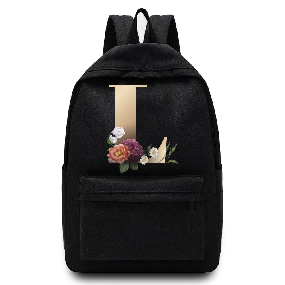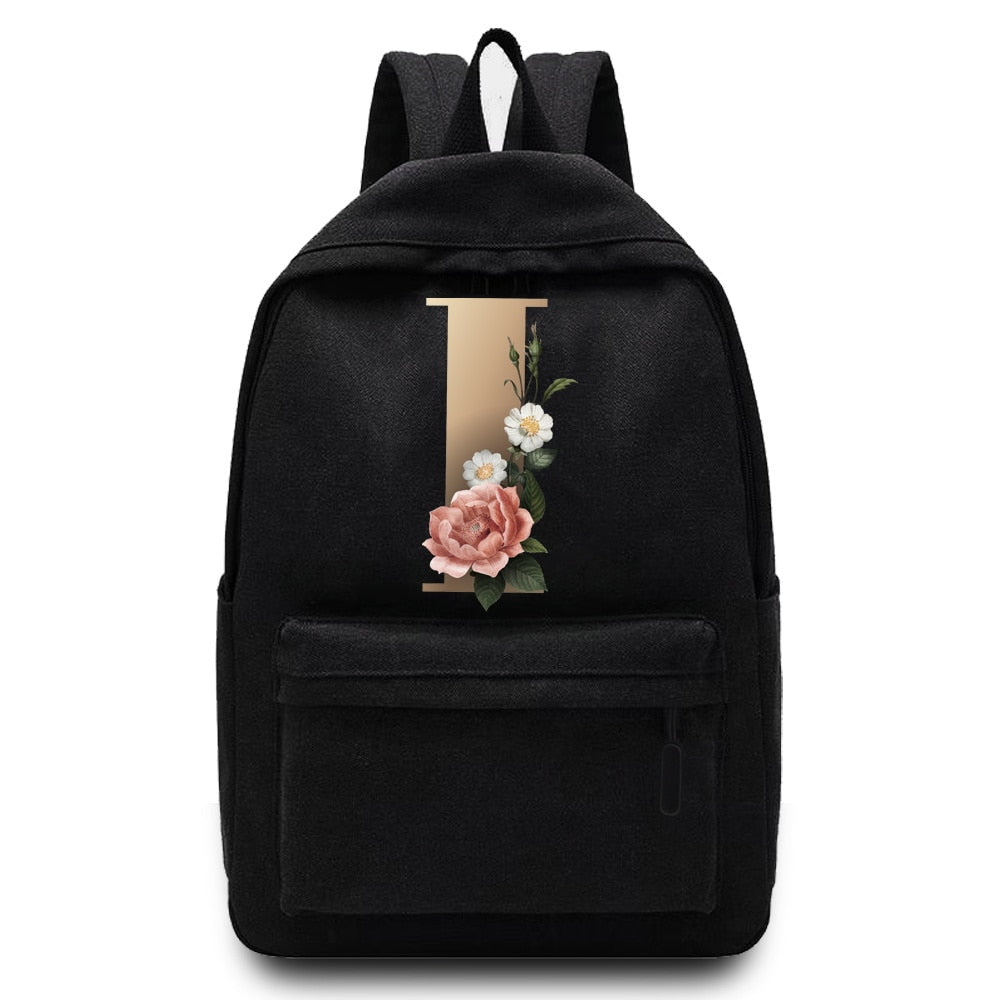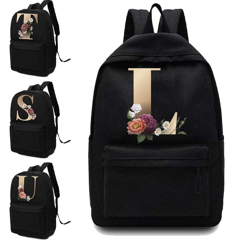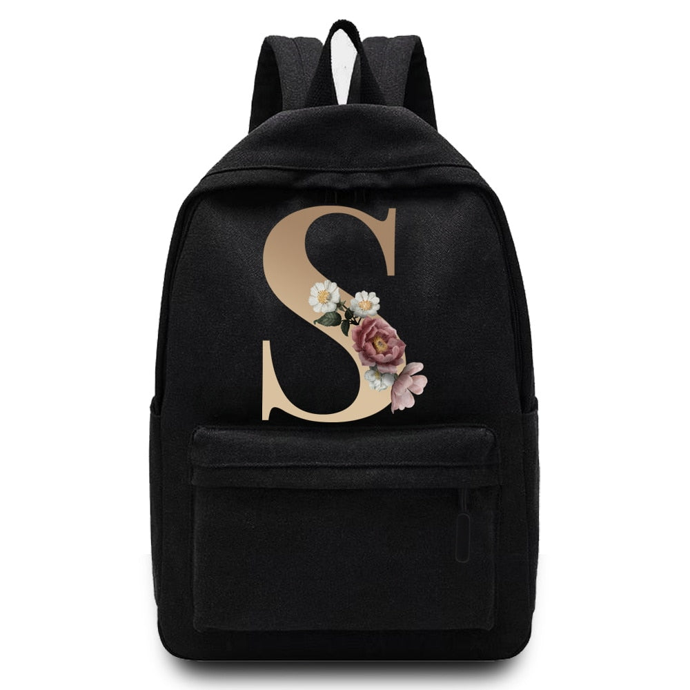 Školní pohodlný jednoduchý batoh s počátečním písmenem a květinou. Více písmen na výběr.