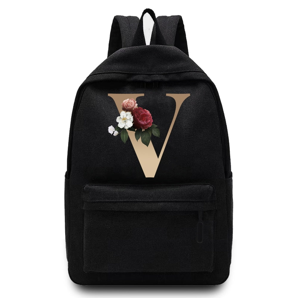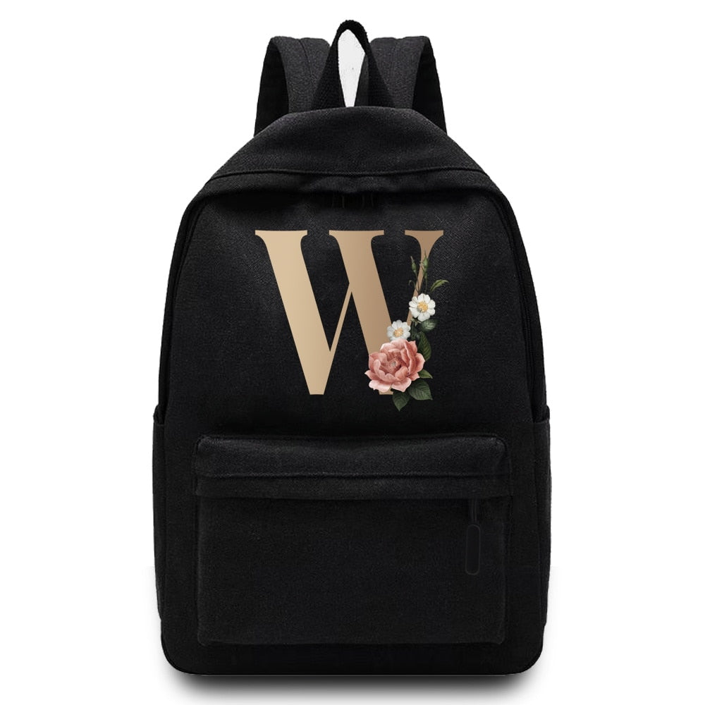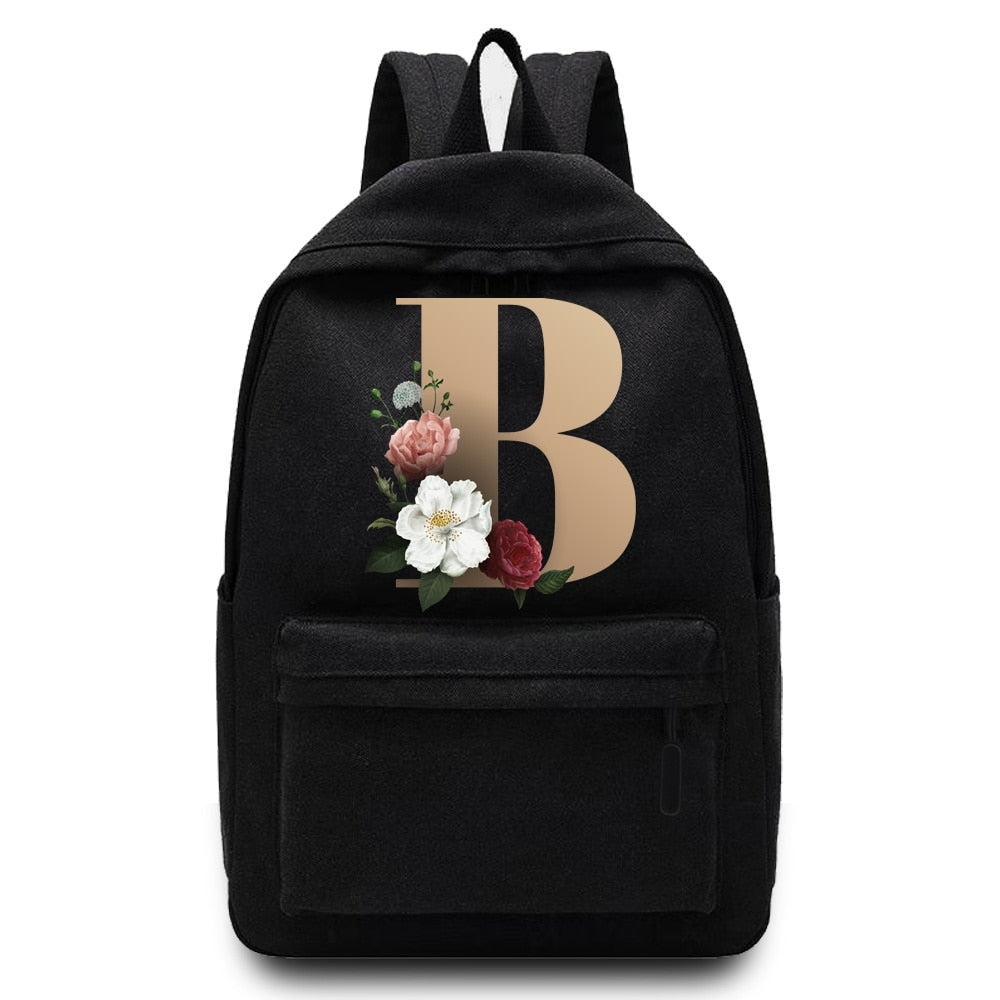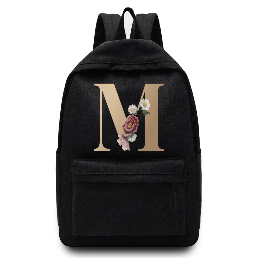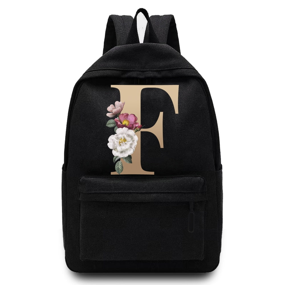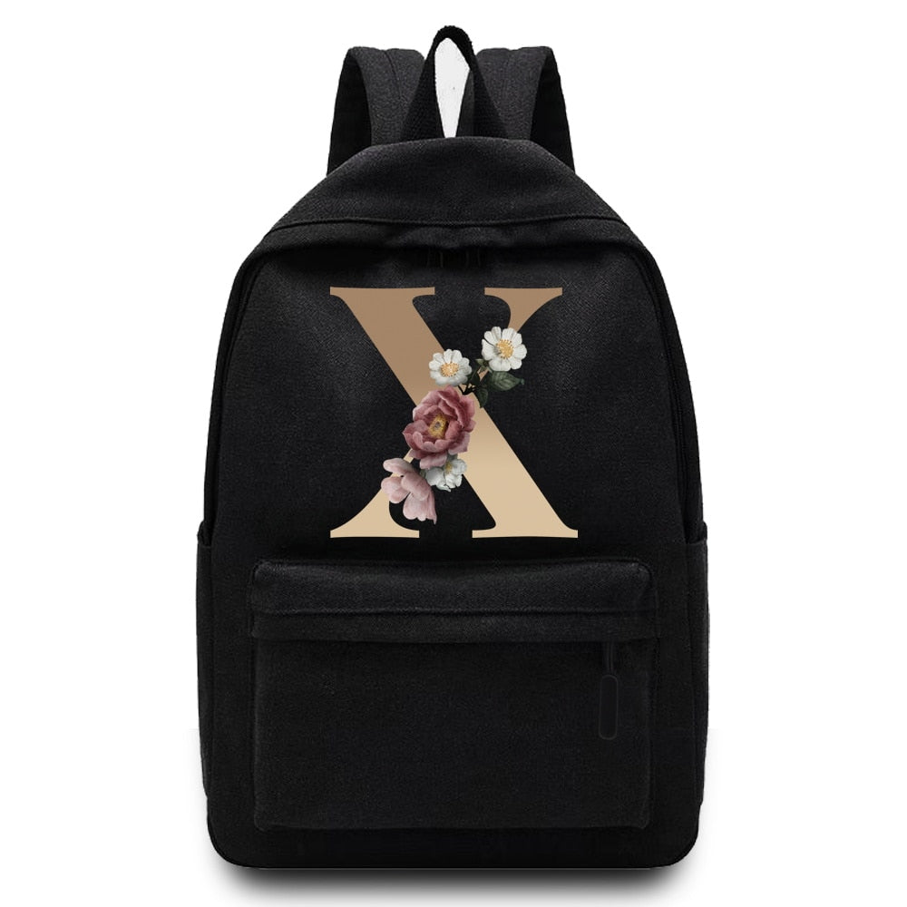 Školní pohodlný jednoduchý batoh s počátečním písmenem a květinou. Více písmen na výběr.