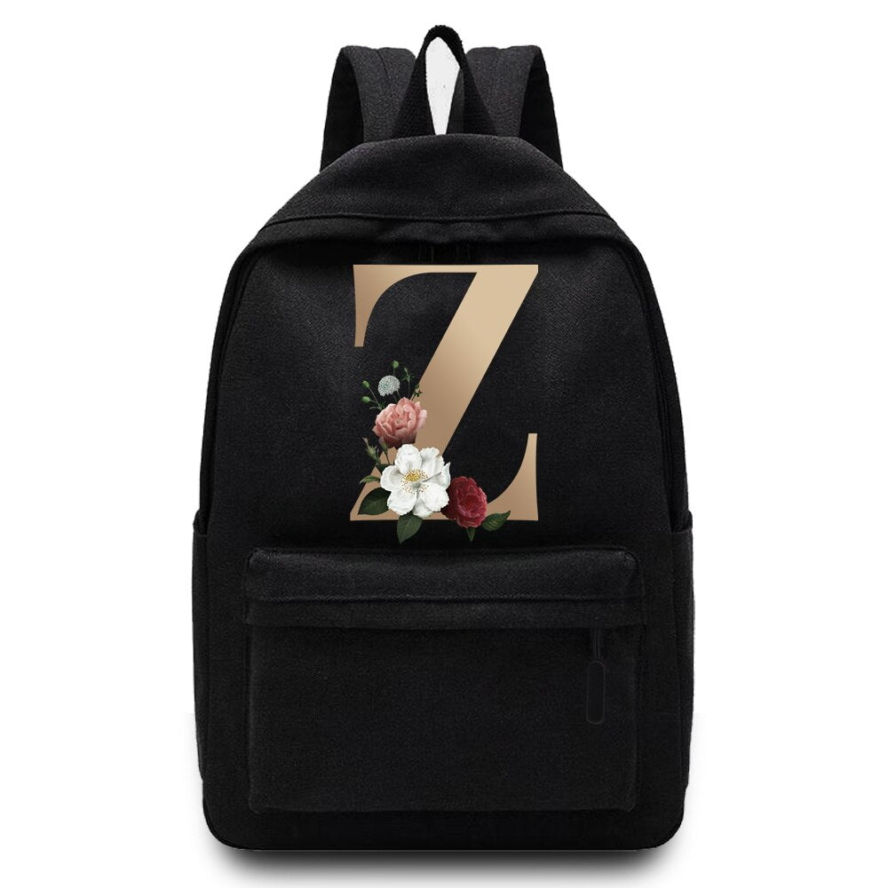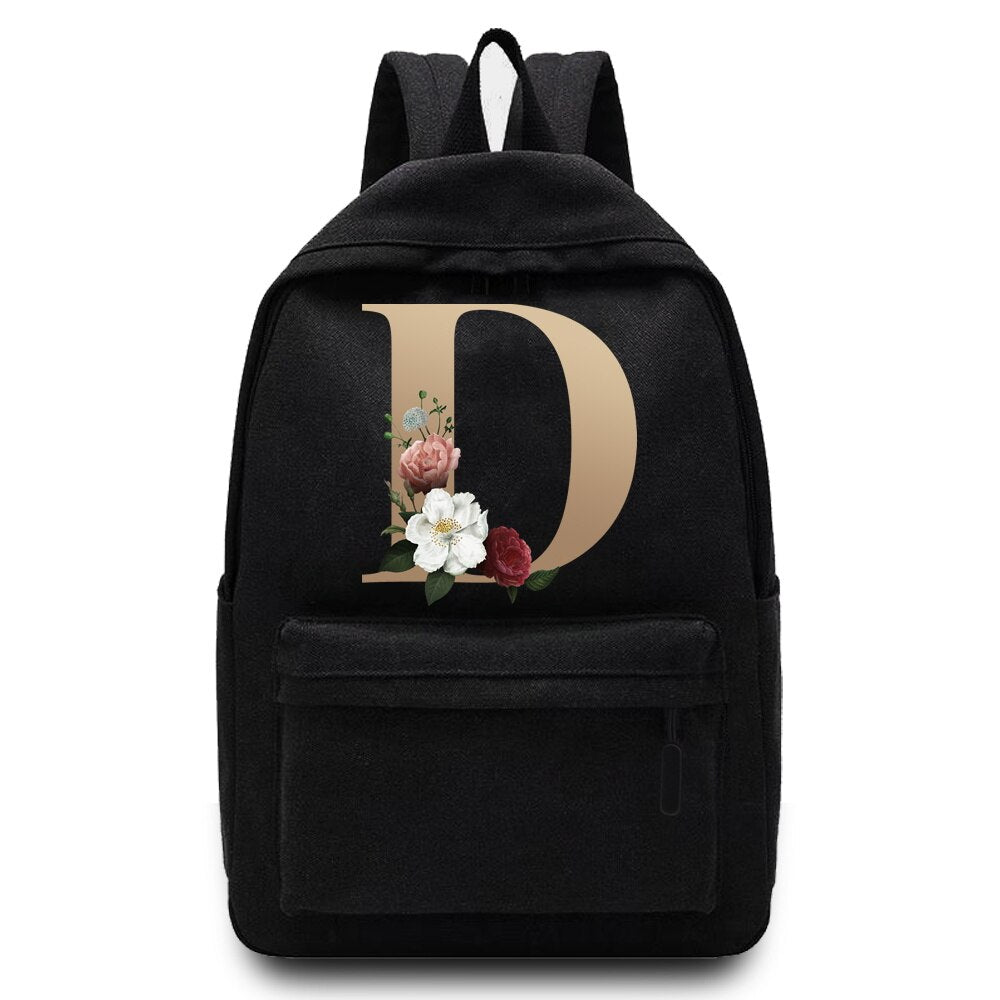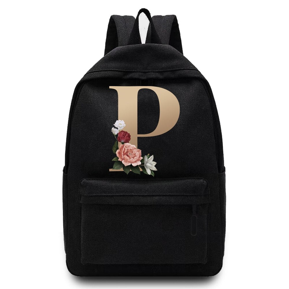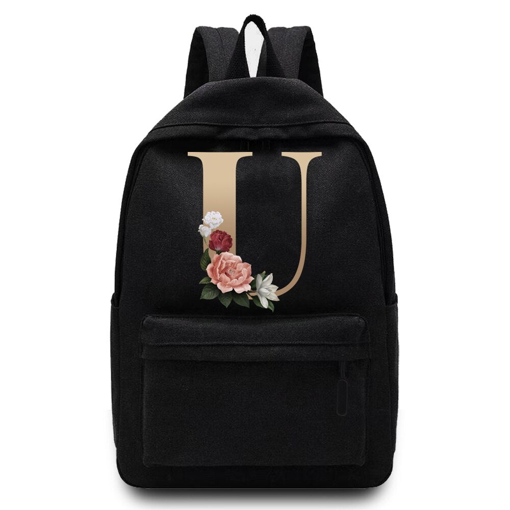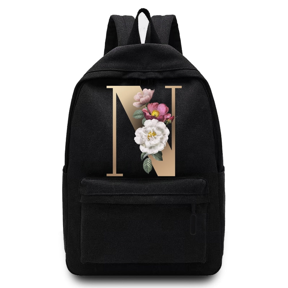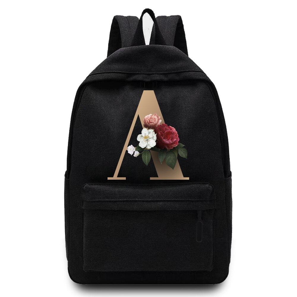 Školní pohodlný jednoduchý batoh s počátečním písmenem a květinou. Více písmen na výběr.