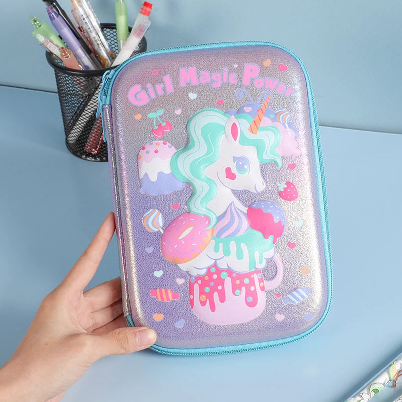 Školní roztomilý penál pro děti se vzorem jednorožce, zvířátek, aut a dalších.