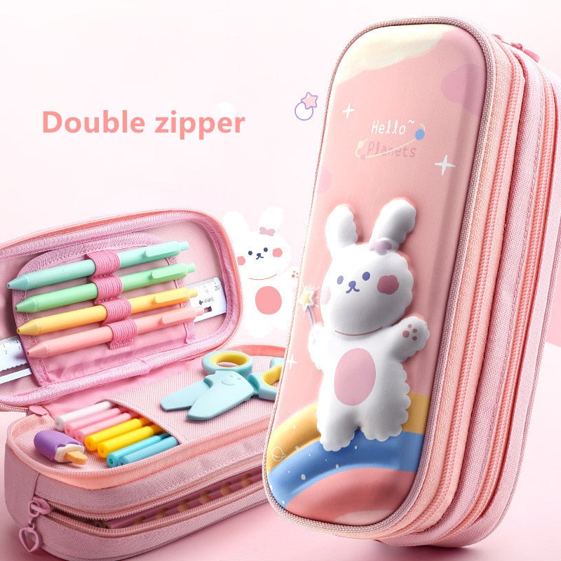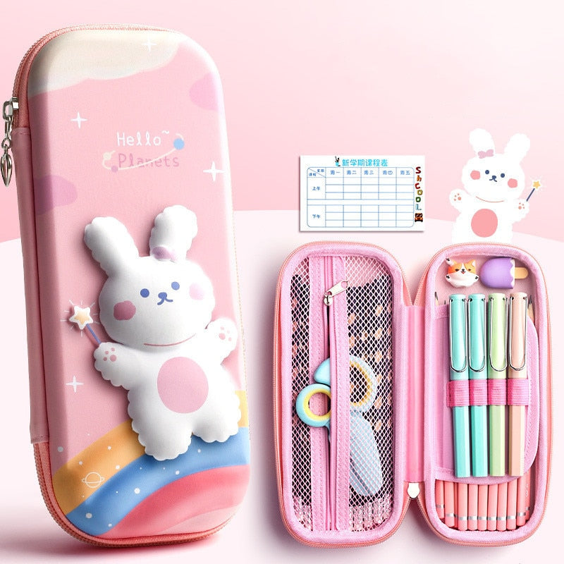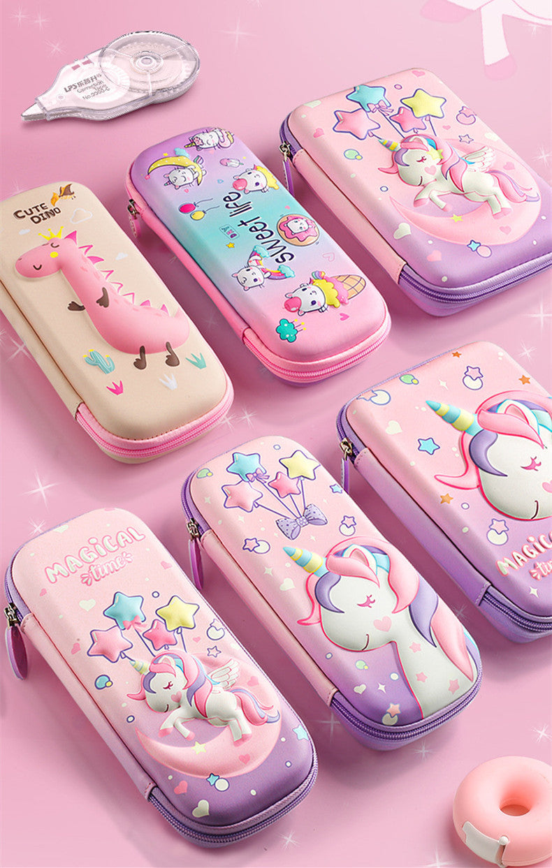 Školní roztomilý penál s 3D jednorožcem ve více barvách. Neobsahuje vybavení.