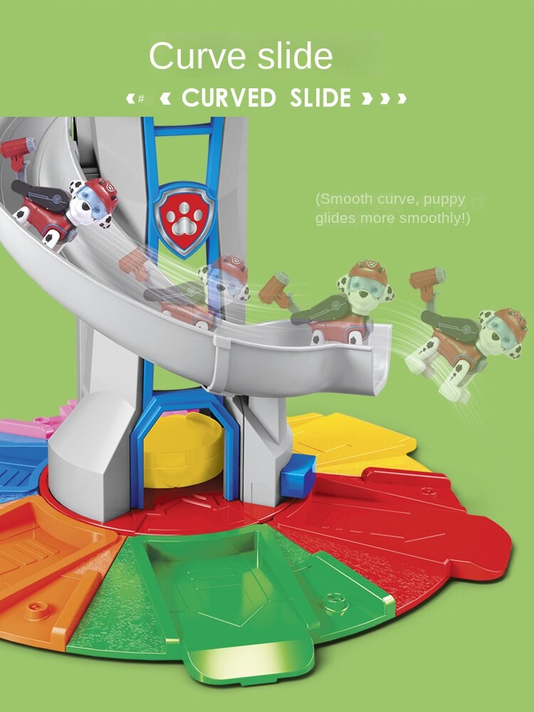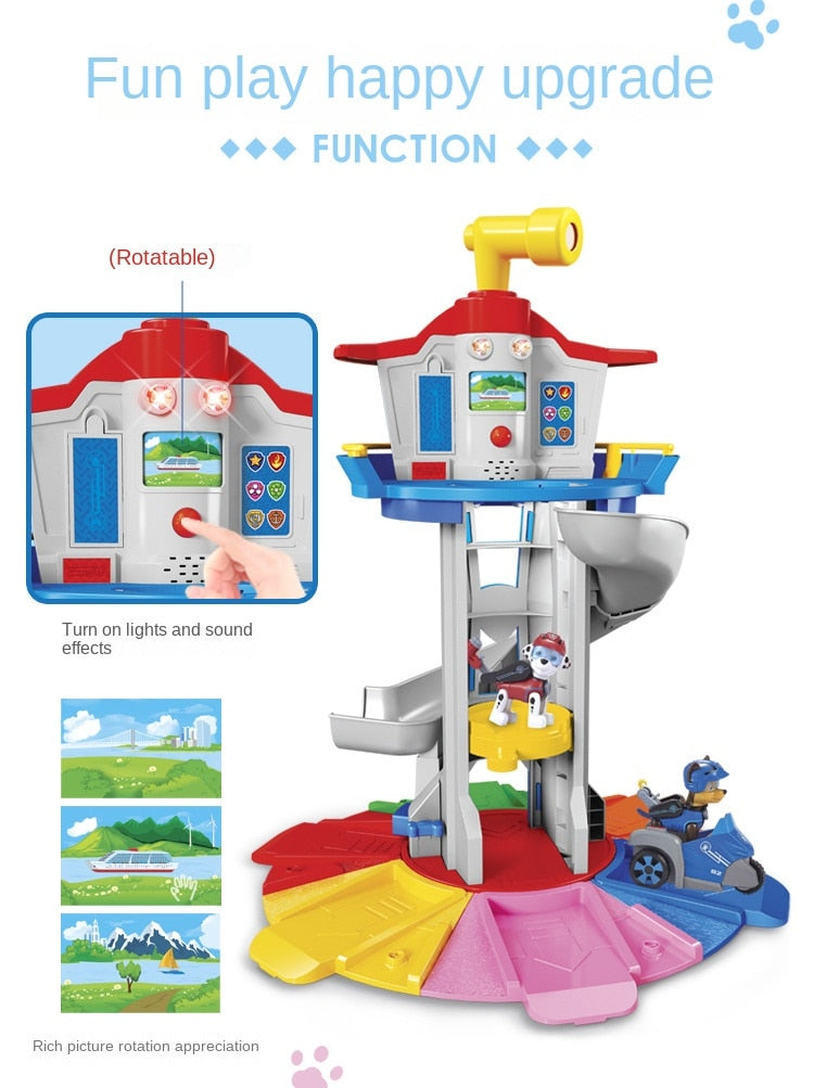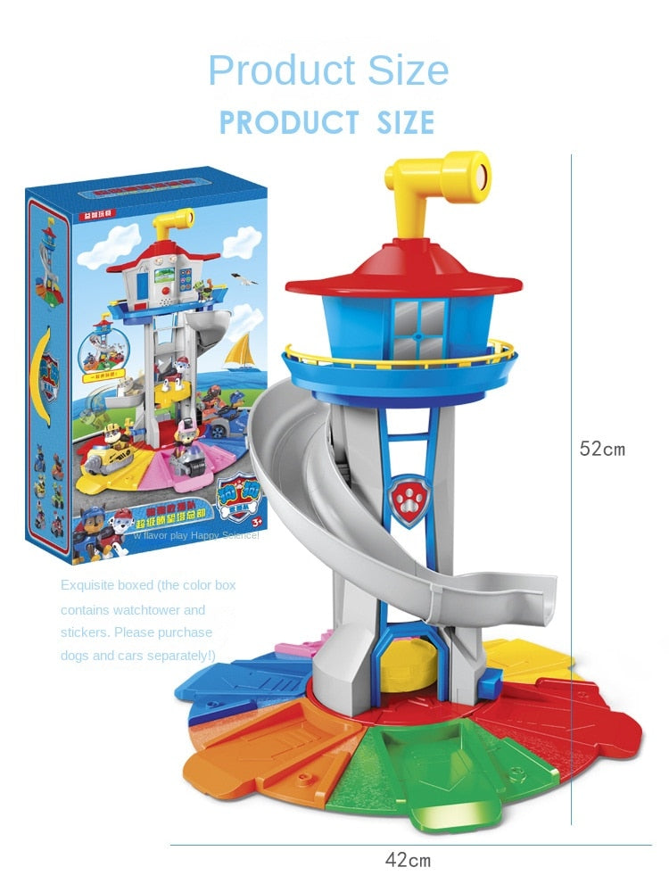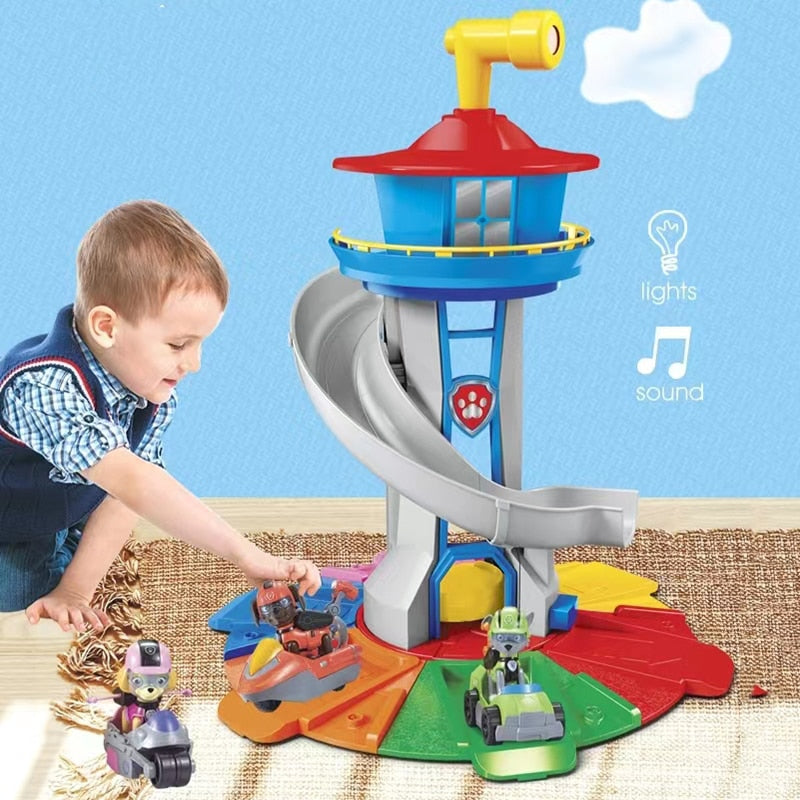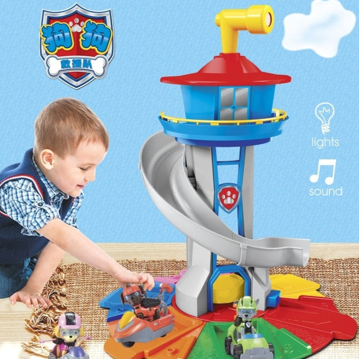 Hasičská stanice ze seriálu Tlapková patrola pro děti se světlem a zvukem. Stavebnice obsahuje také výtah a skluzavku.