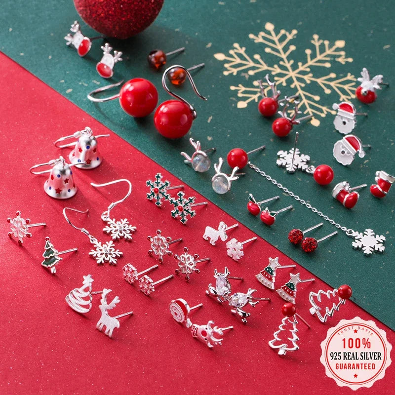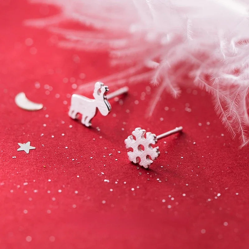 Stříbrné stylové vánoční náušnice se sobem, vločkou, Santou a dalšími.