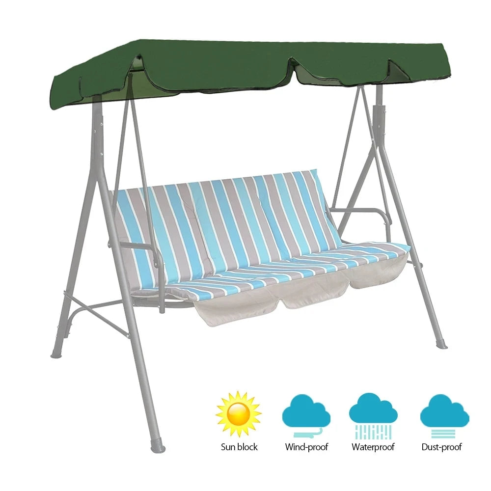 Stříška na venkovní houpačku. Povrch je speciálně upravený a voděodolný. Potahy na houpačku chrání vás i vaši houpačku před deštěm. Můžete si užít odpočinek venku s přáteli.