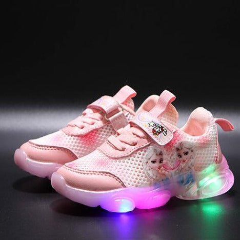 Svítící dívčí roztomilé tenisky s potiskem z pohádky Frozen. Více barev na výběr.