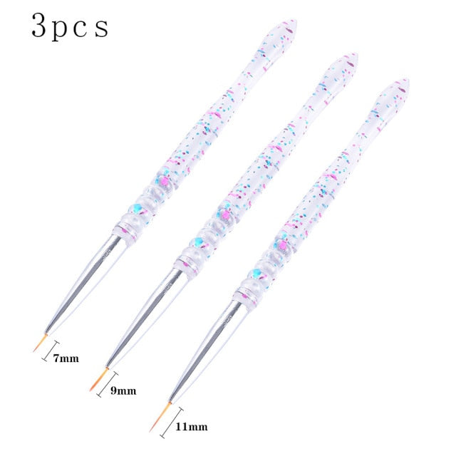 Velmi praktický tenký štětec pro úpravu nehtů. Je vhodný pro perfektní aplikaci gelů, laků nebo kreslení na nehty a také pro francouzskou manikúru. Balení obsahuje 3ks štětce.