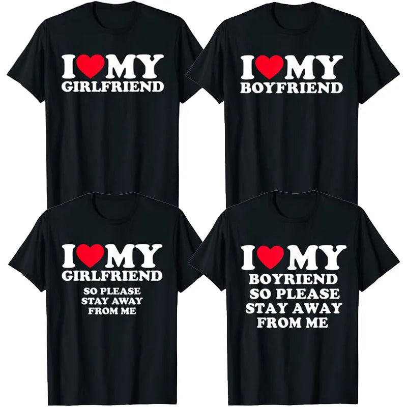 Triko s nápisem I Love My Boyfriend nebo Girlfriend v černé barvě.