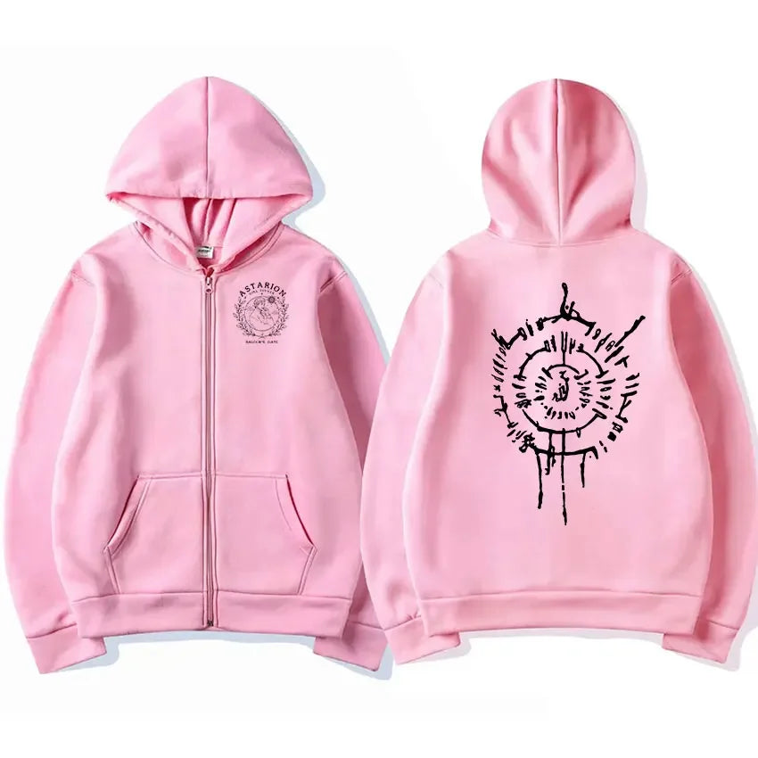 Unisex mikina na zip s kapucí a s potiskem Astarion. Více barev na výběr.