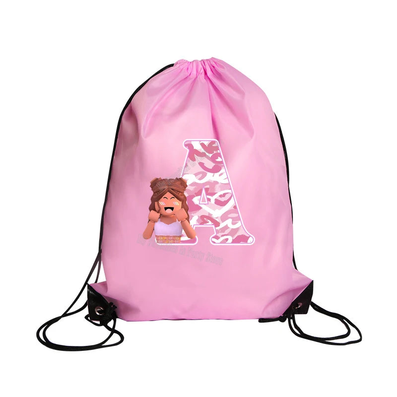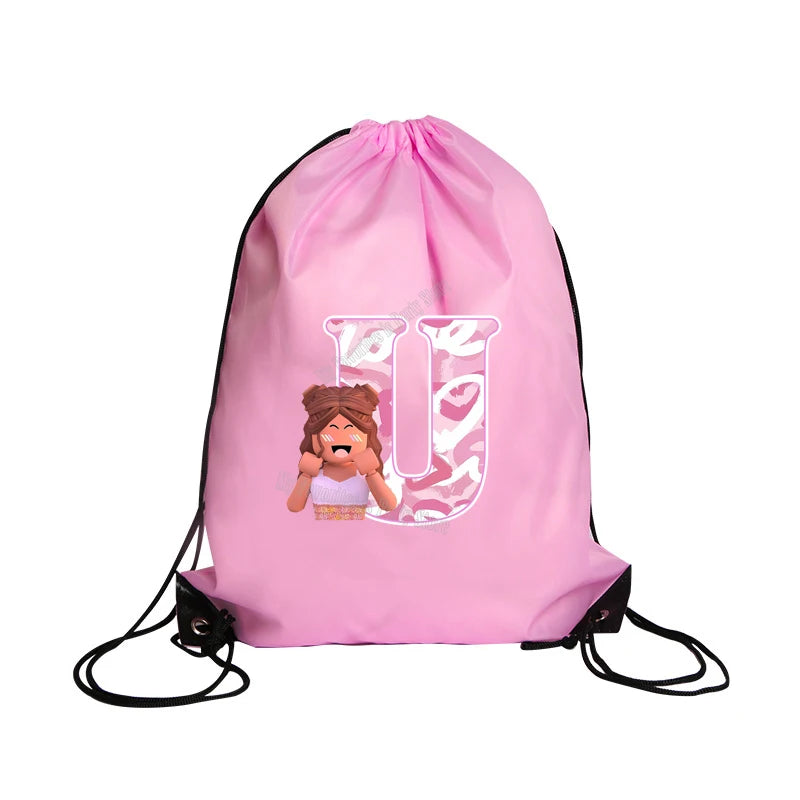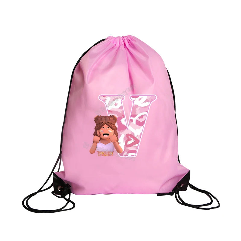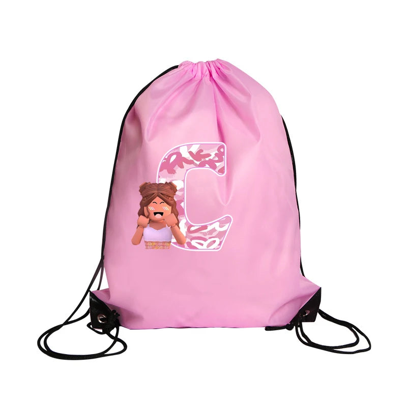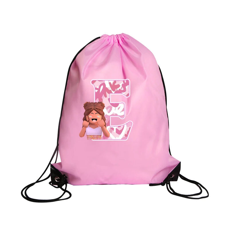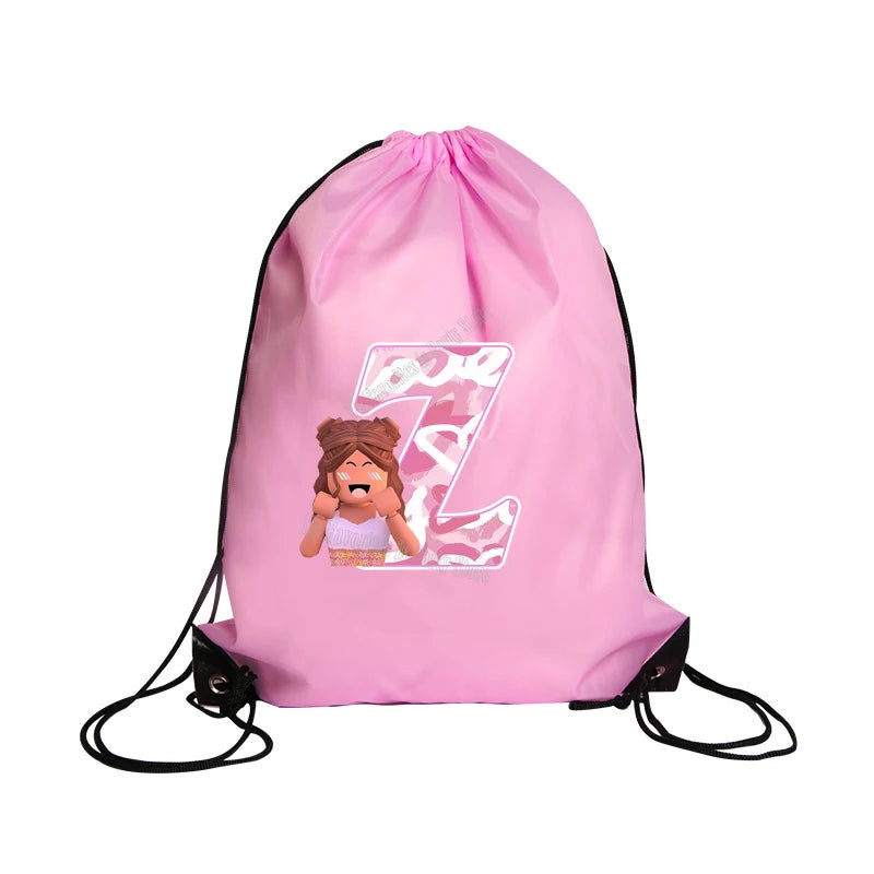 Vak s potiskem Roblox a písmenem v růžové barvě.