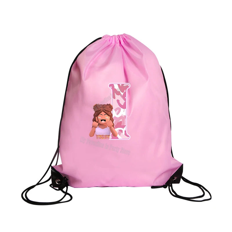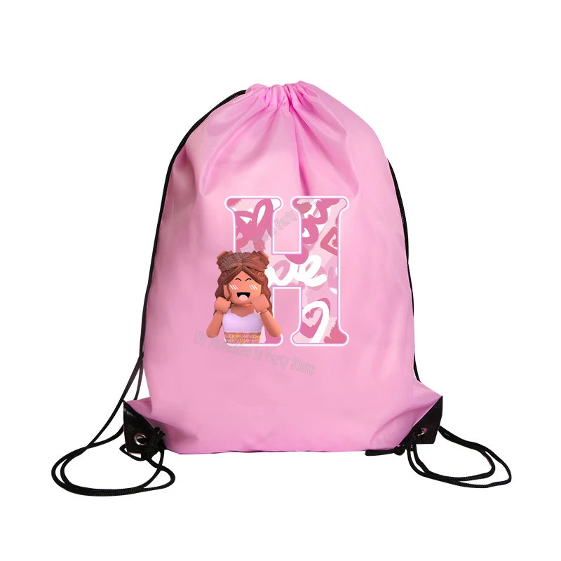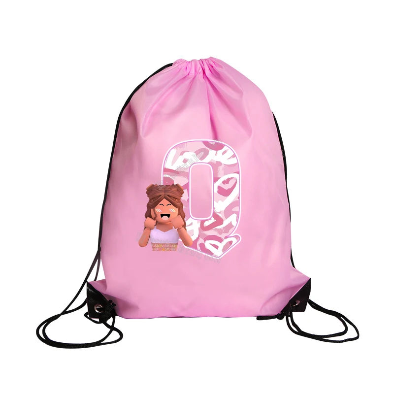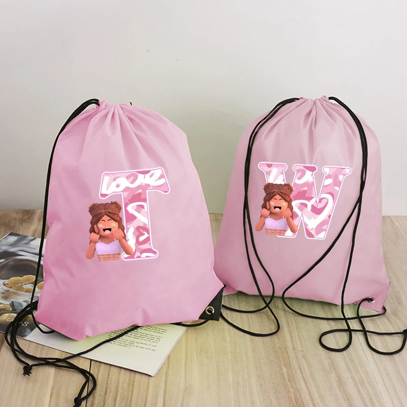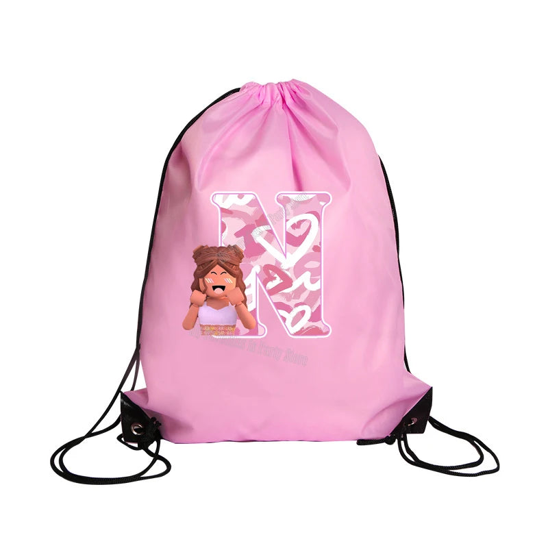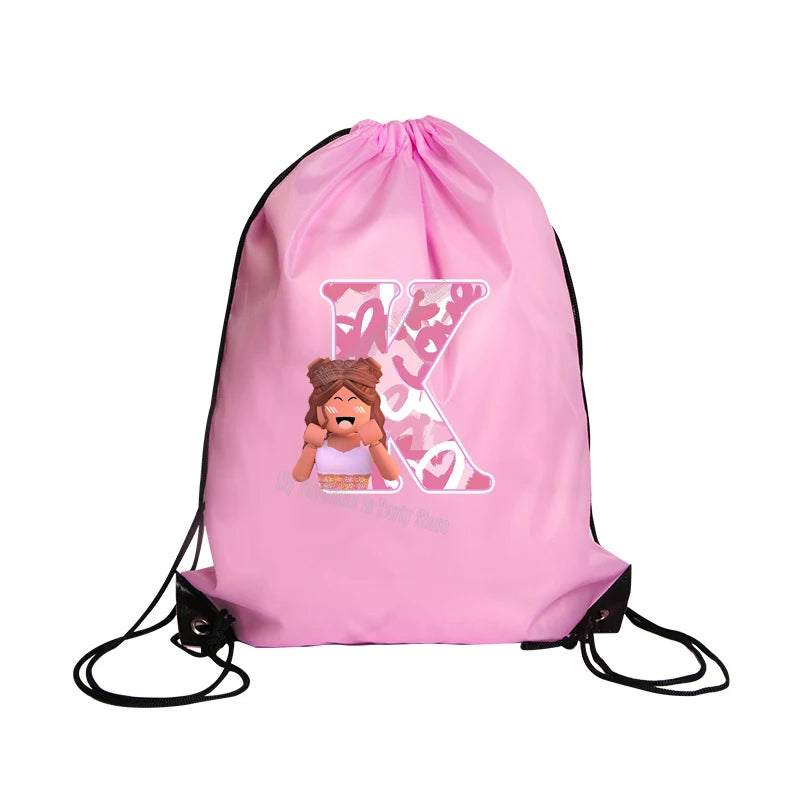 Vak s potiskem Roblox a písmenem v růžové barvě.