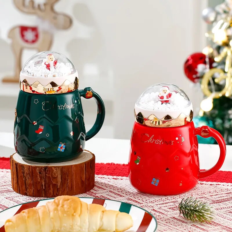 Vánoční roztomilý hrnek s víčkem se sněhovou koulí. Více barev na výběr.